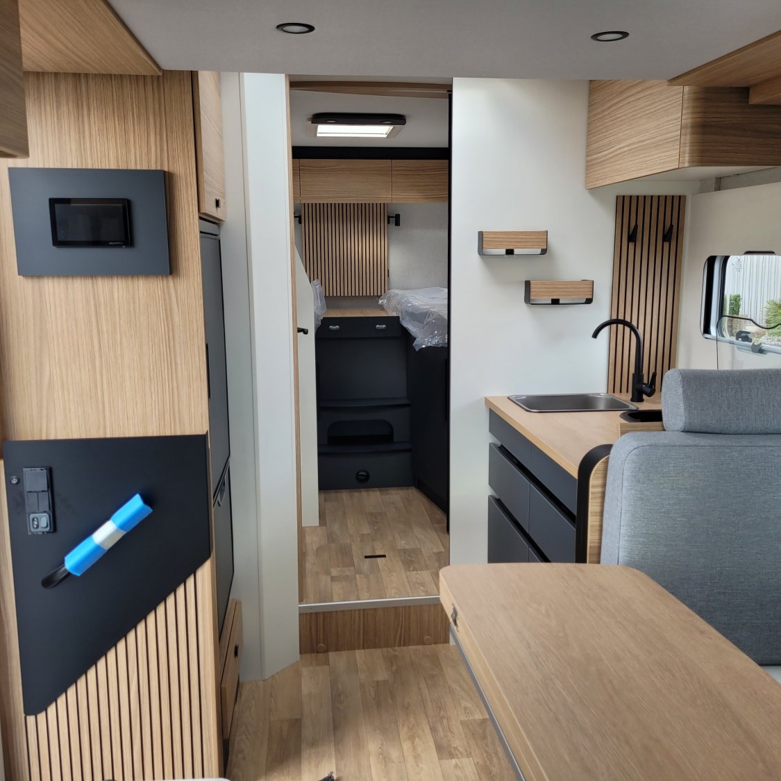TIROIR BAS DE CAISSE, DOUCHETTE EXTERIEURE, TRUMA COMBI 6E DIESEL, STORE EXTERIEUR, REFRIGERATEUR A COMPRESSION, LIT PAVILLON, BATTERIE LITHIUM 200A + 2 PANNEAU SOLAIRE, AUTORADIO 7 CAMERA DE RECUL