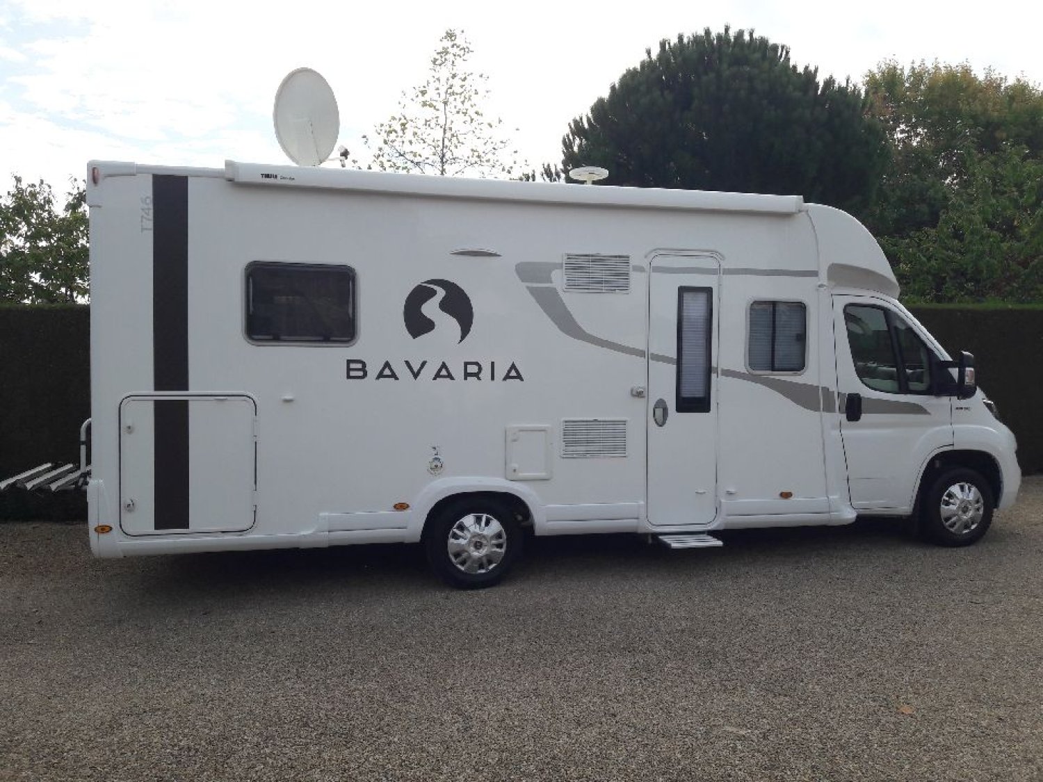 A vendre camping car Bavaria 5 places carte grise, 1ere main, panneau solaire et batterie lithium avec convertisseur, parabol automatique. Suspension pneumatique, auvent 4m, porte 3 vélos. Contrôle technique et étanchéité à jour. Très bon état.