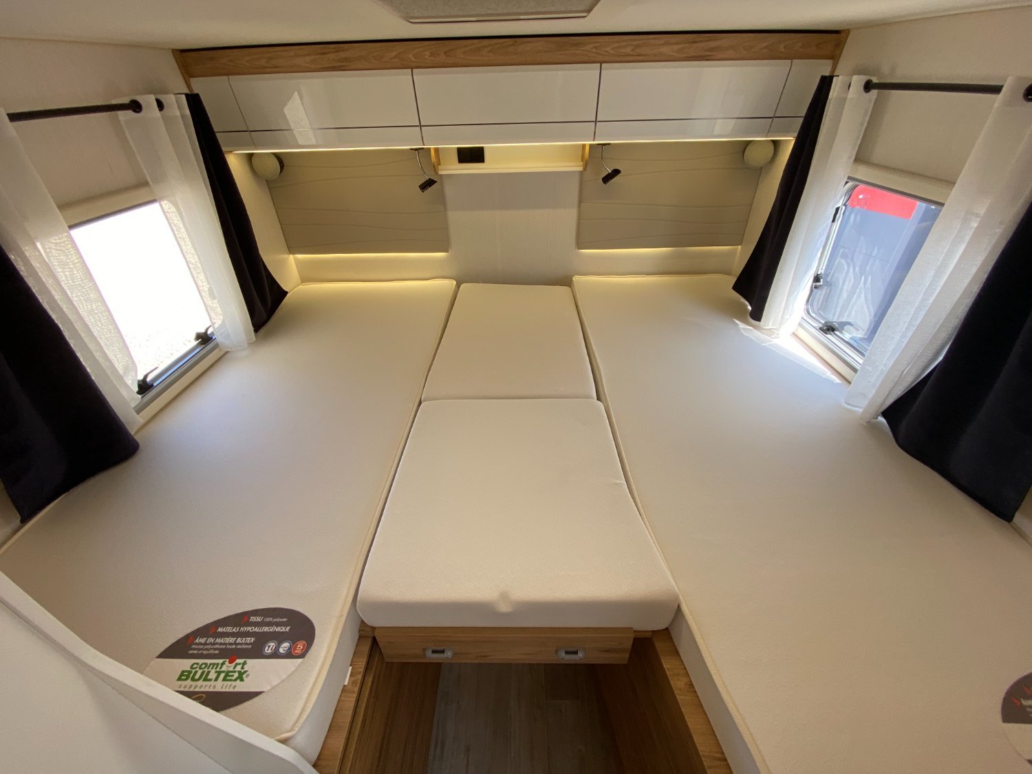 - Lit jumeaux arrière (200 x 80 cm et 194 x 80 cm)
