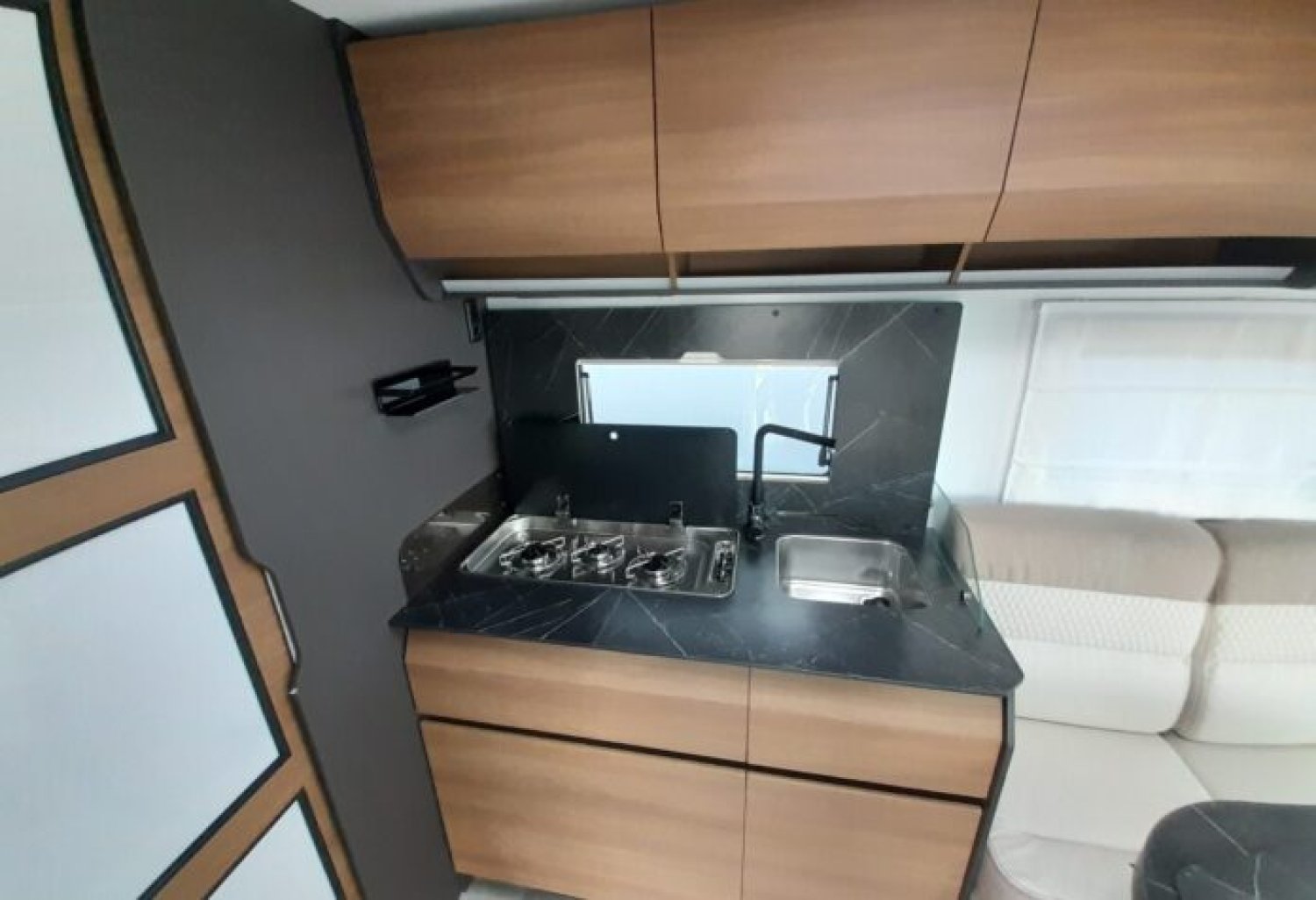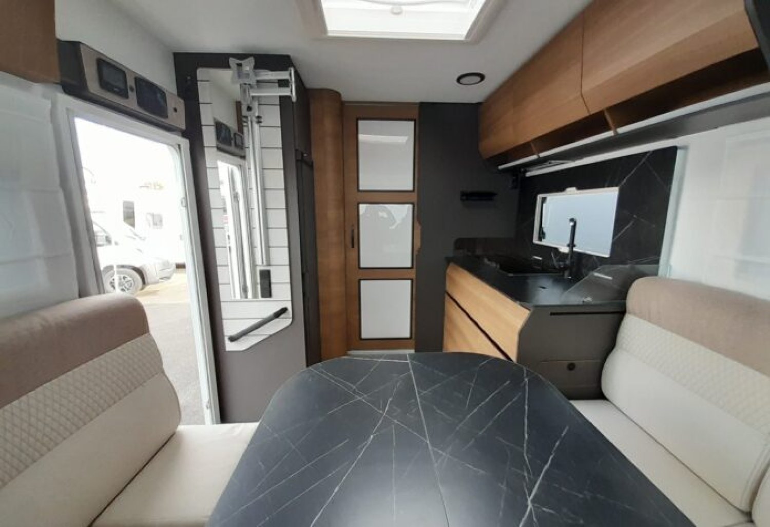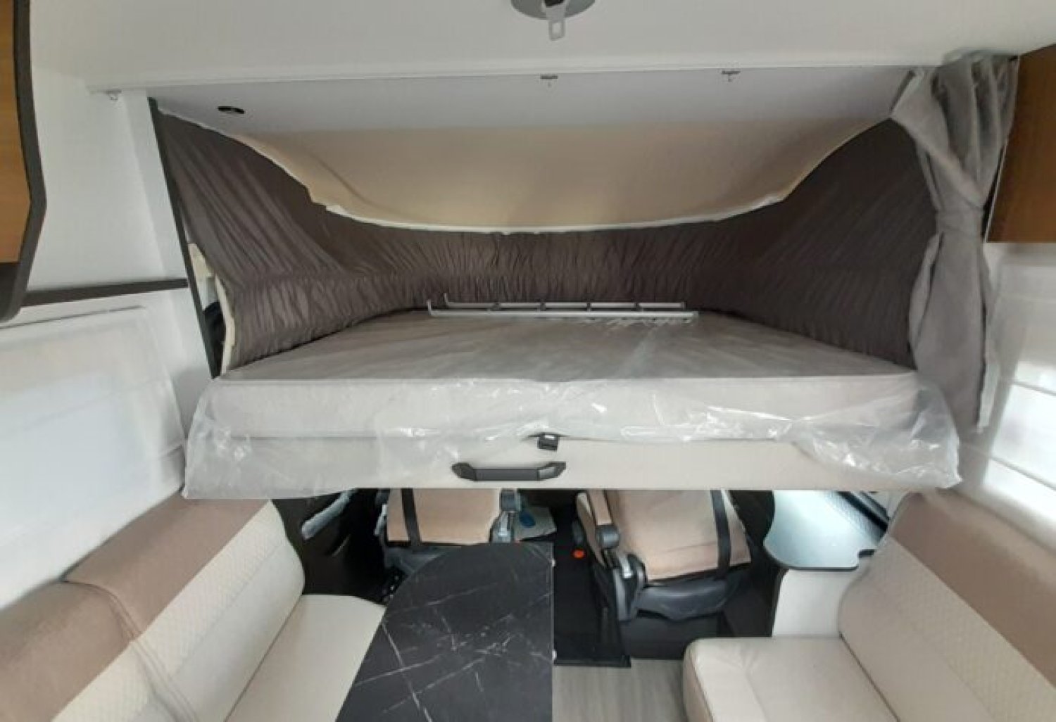 Pack PLUS (Soit : Frein de parking électrique, Jantes alliage 16’’, Volant et pommeau cuir, Radar de recul, Portes cellule XL centralisée, Porte moustiquaire, Radio DAB Pioneer 9’’ + Caméra de recul, Panneau solaire 200w + Régulateur MPPT, Lumière extérieure LED, Occultations de cabine intégrées, Système de fixation + rails d’arrimage en soute, Pneus 4 saisons, Marche pied électrique, Pré-installation 2nde batterie de cellule)