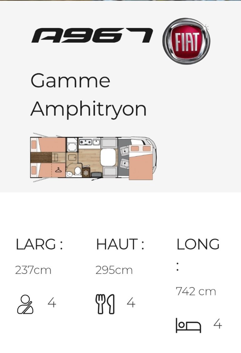 Taille 7,42 L × 2,37 l × 2,95 H (+ antenne TV Sat)