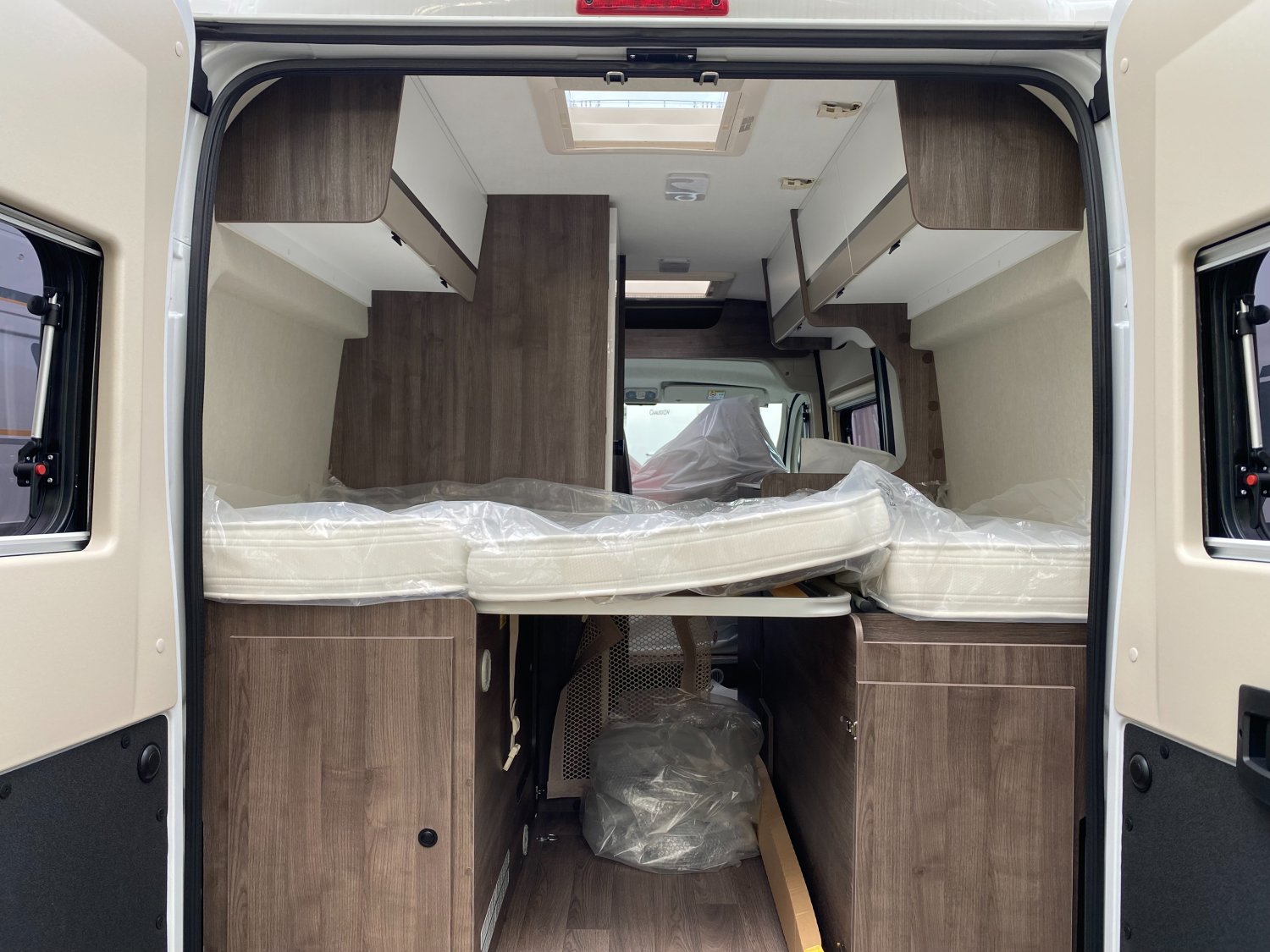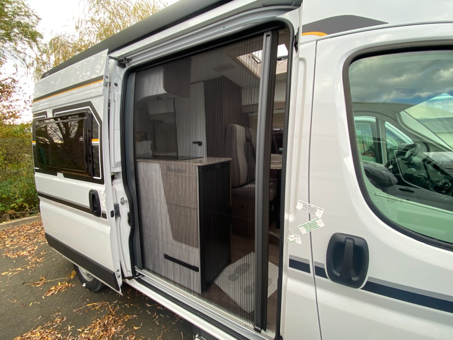 Radars de recul, - Panneau solaire 200w + MPPT, - Marchepied électrique, - Rallonge de table, - Grand lanterneau au-dessus dinette (70x50 cm), - Moustiquaire plissée sur la porte latérale, - Rideaux ocultation vitres cabine, - Isofix, FITINION UP :, - Housse de cabine, - Store extérieur