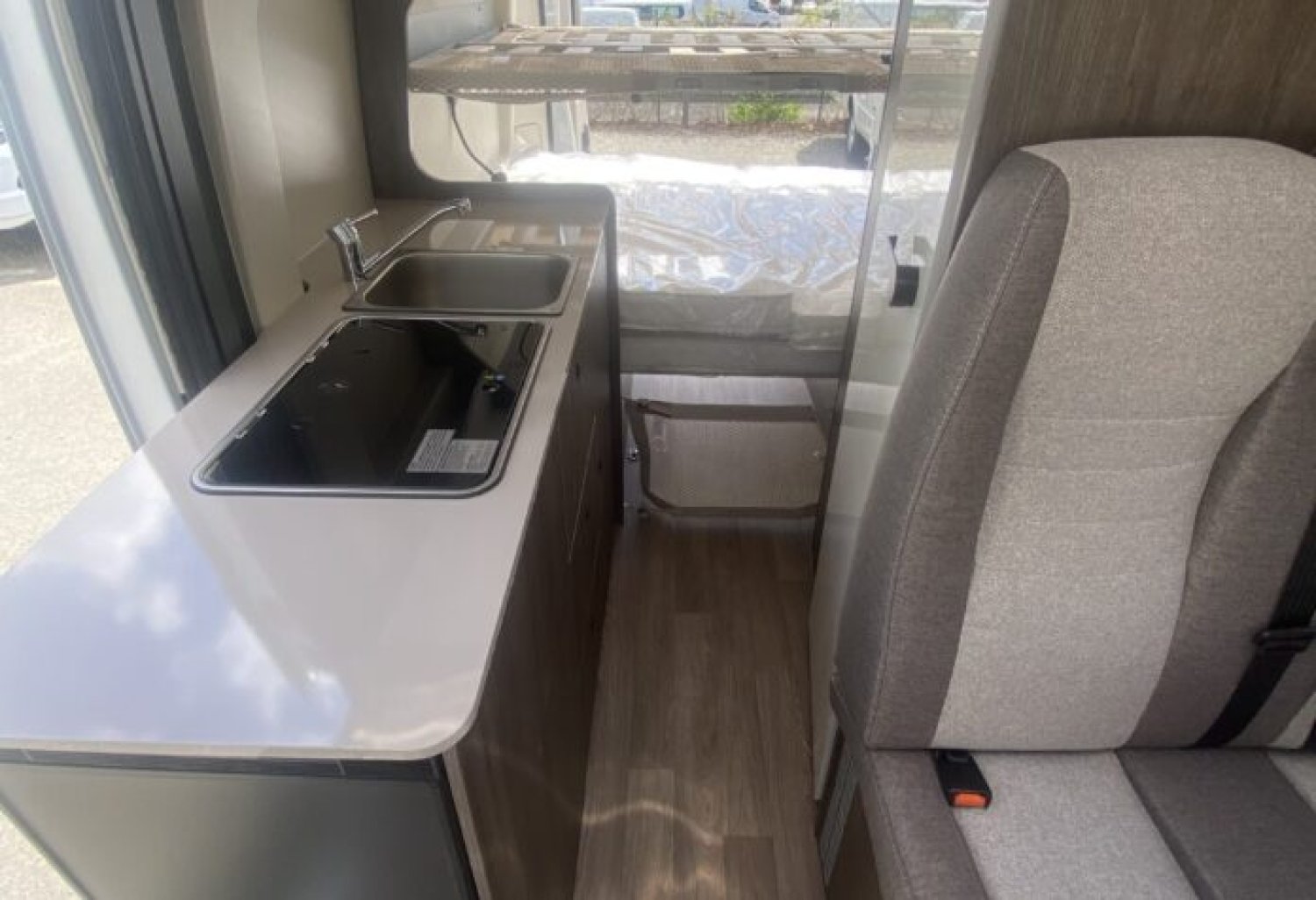 Réfrigérateur à compression 84L double ouverture - Evier et réchaud 2 feux encastrés - Fenêtres double vitrage - Fenêtre dans la salle de bain - Chauffe-eau / Chauffage Truma diesel avec kit altitude - Châssis 3T500