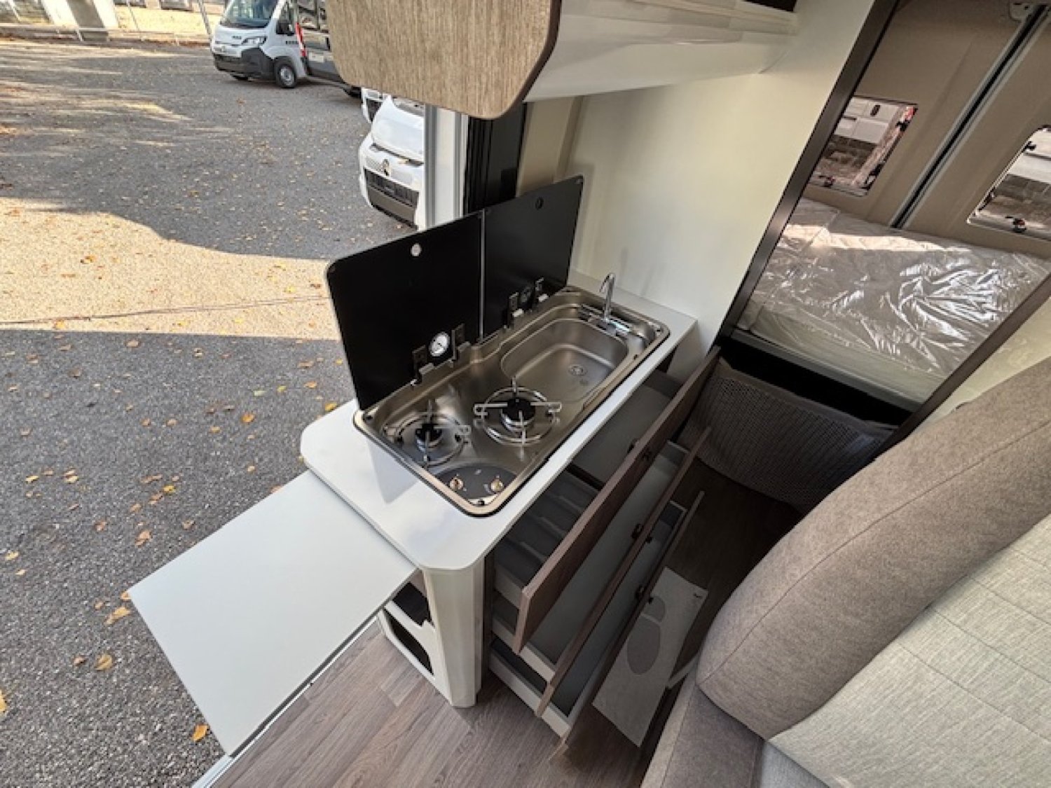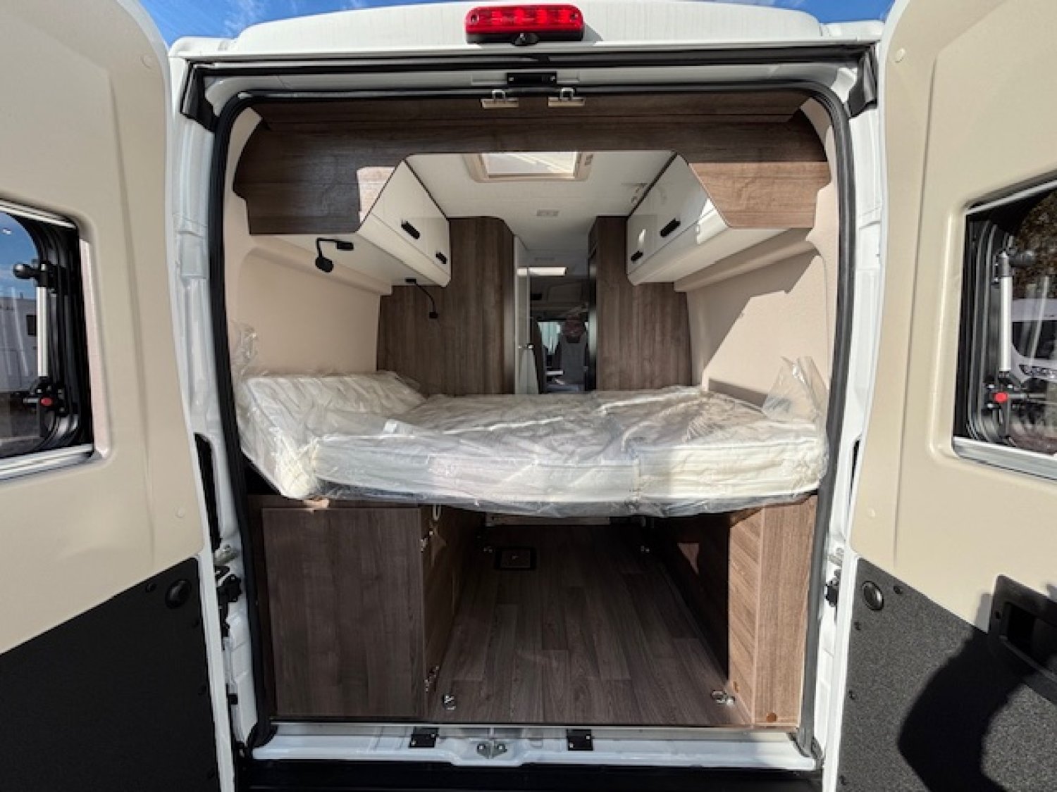 Entièrement équipé avec station multimédia + caméra de recul, panneau solaire 200 W, jantes alu, moustiquaire de porte, rideaux occultants… Il dispose d un grand lit transversal confortable, d une salle de bain confortable avec fenêtre, d'un grand réfrigérateur de 138 l et de tout ce qu il faut pour voyager confortablement en toute liberté.