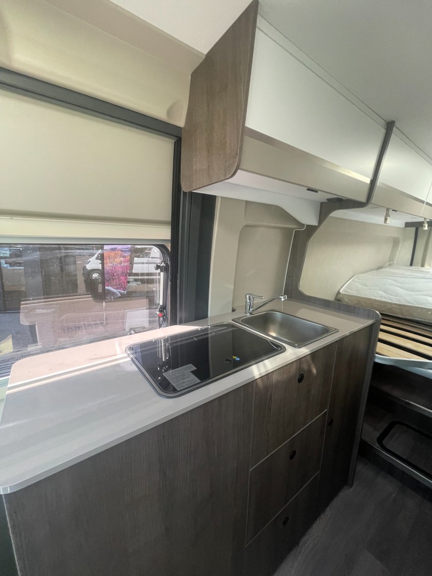 Le Benivan 160 UP est un fourgon aménagé construit sur porteur Fiat (Ducato, 2,2 L, ~140 ch) qui offre un bon compromis entre maniabilité et habitabilité. Avec une longueur d’environ 6,36 m, une largeur de 2,05 m et une hauteur aux alentours de 2,65 m, il reste assez compact pour la route tout en proposant un espace intérieur confortable
