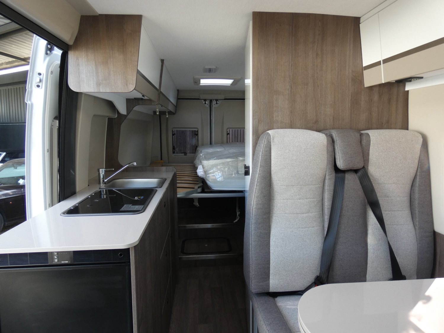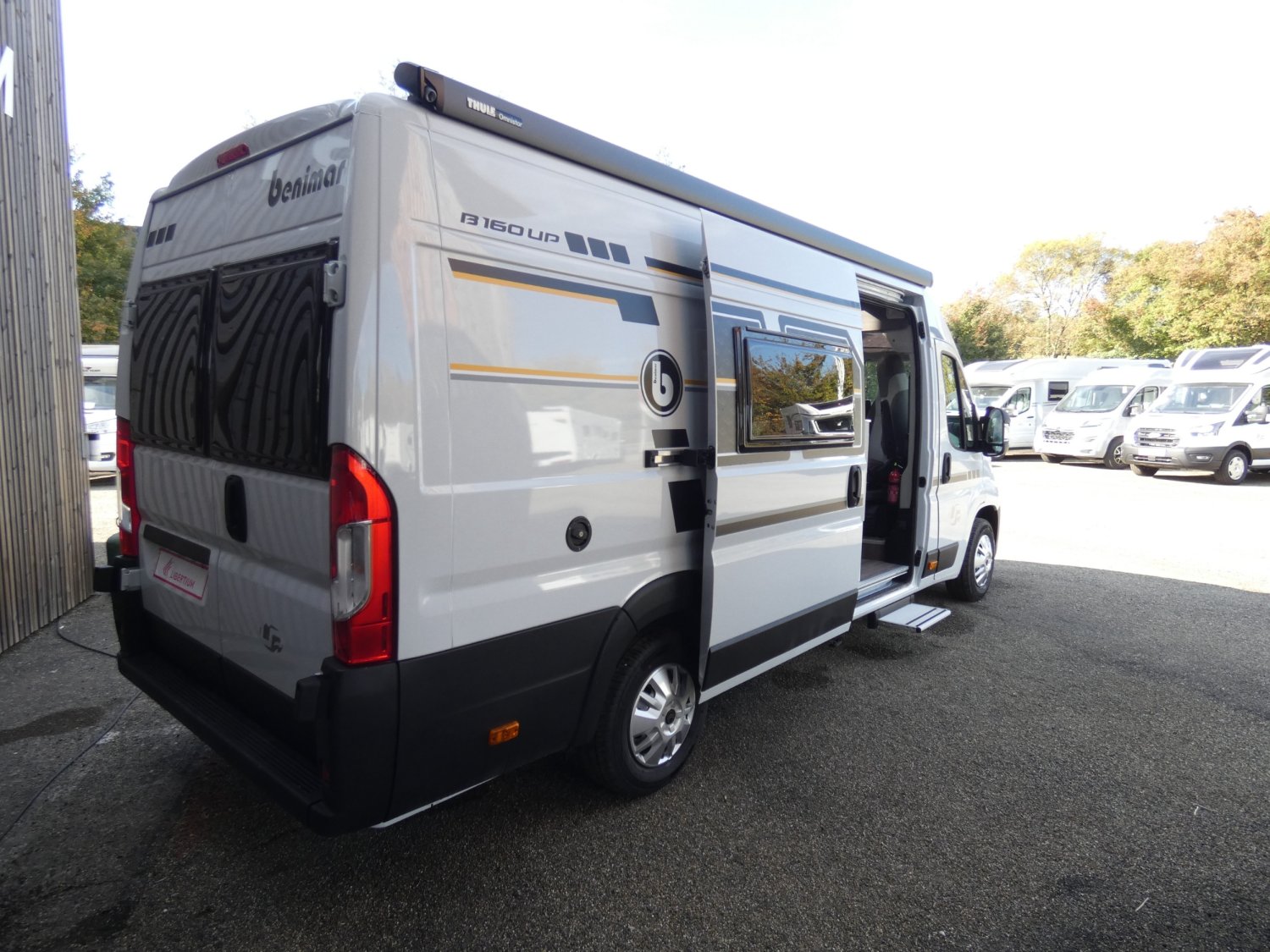Prêt à partir, avec de série la moustiquaire de porte coulissante, le marche-pied électrique, le store extérieur, le panneau solaire 200 w ou encore les stores de cabine, le fourgon aménagé BENIMAR 160 UP (lits jumeaux) vous attend pour partir à l'aventure !