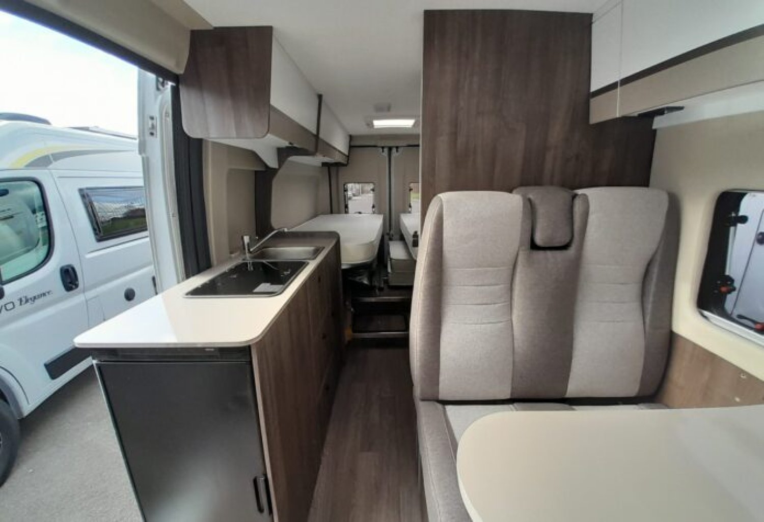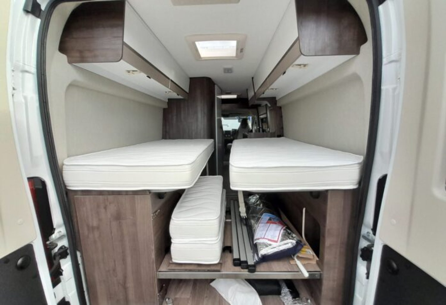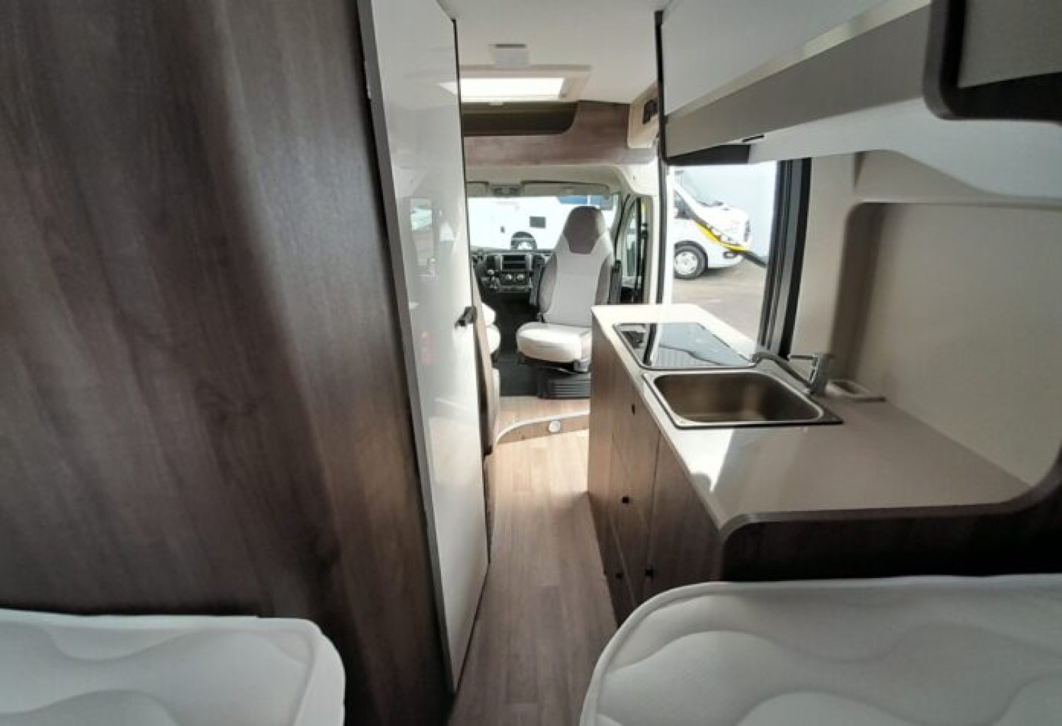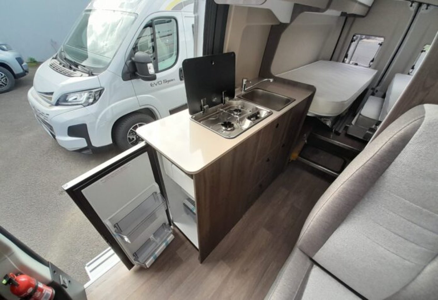 Réfrigérateur à compression 84L double ouverture - Evier et réchaud 2 feux encastrés - Fenêtres double vitrage - Fenêtre dans la salle de bain - Chauffe-eau / Chauffage Truma diesel avec kit altitude - Châssis 3T500