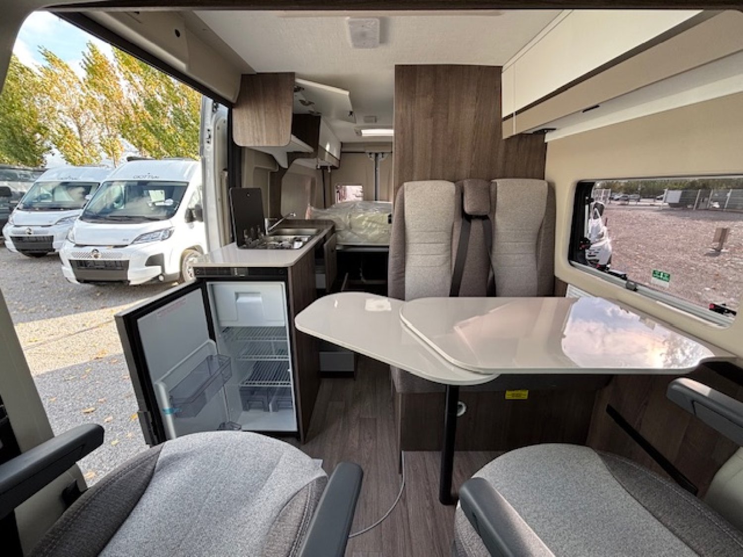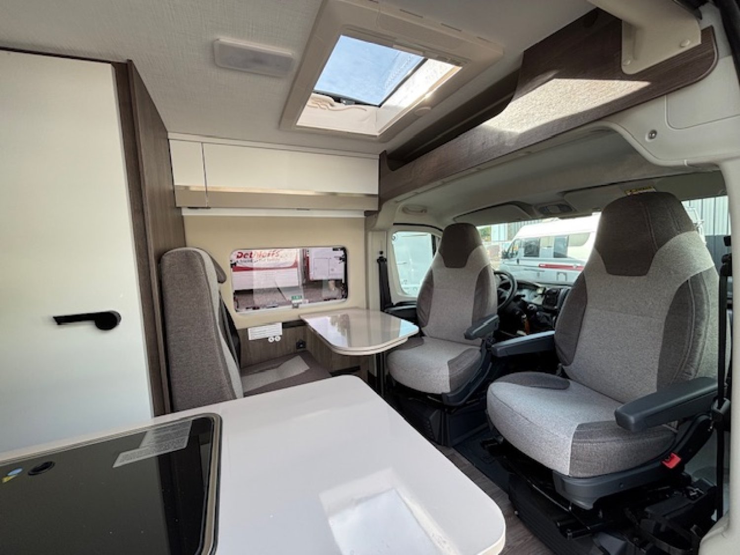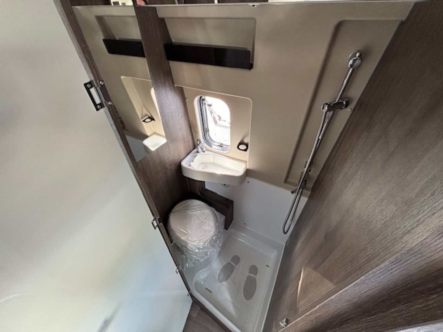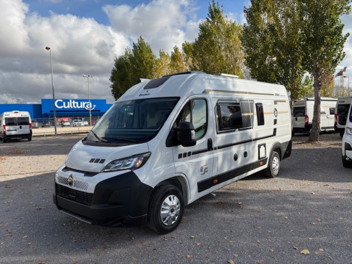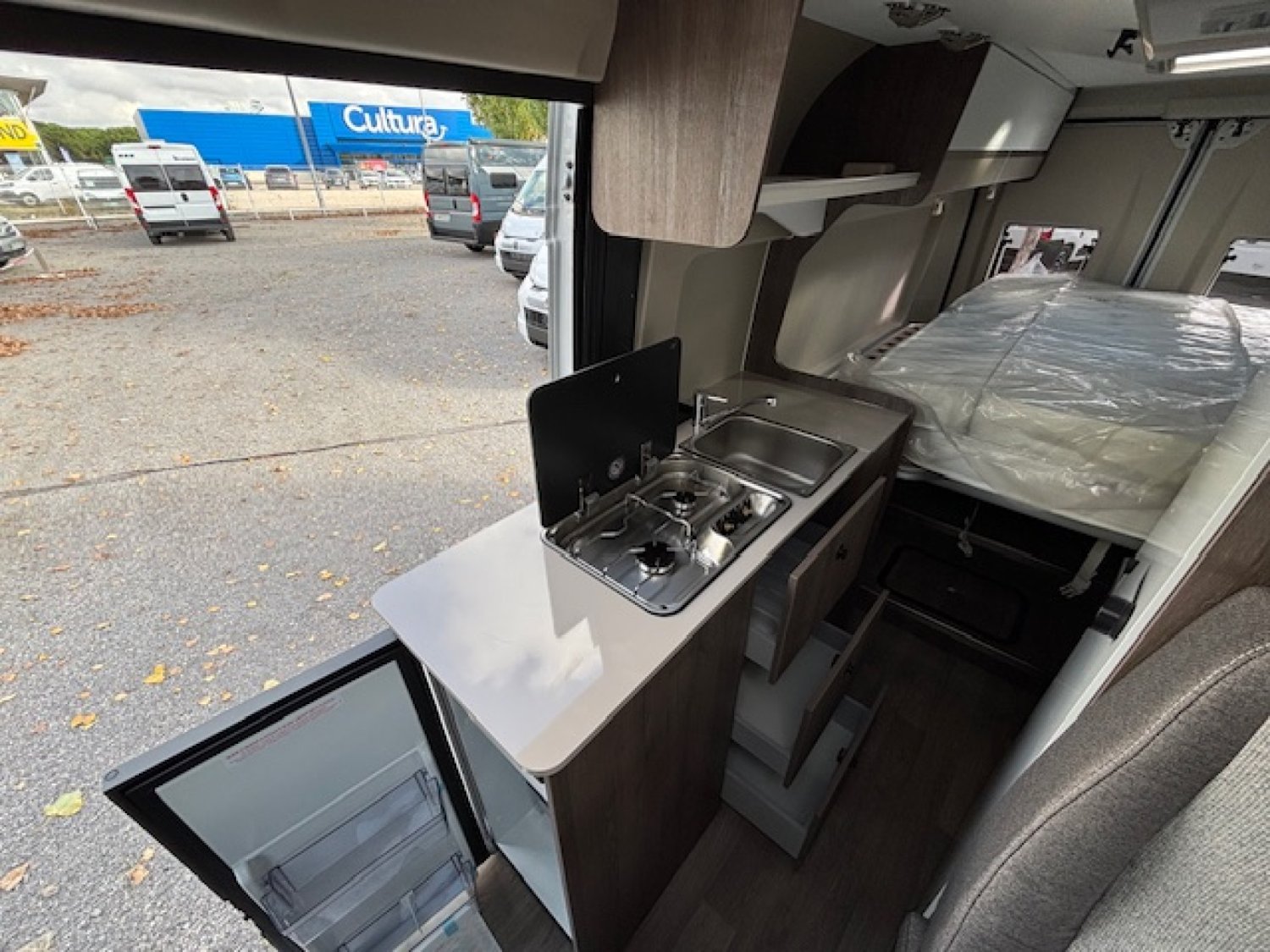 Entièrement prêt à partir avec store extérieur, panneau solaire 200 W, moustiquaire de porte, rideaux occultants… Il dispose de deux lits jumeaux convertibles en un grand lit double, d une salle de bain confortable avec fenêtre, d'un réfrigérateur dans l'entrée de 84 l et de tout ce qu il faut pour voyager confortablement en toute liberté.