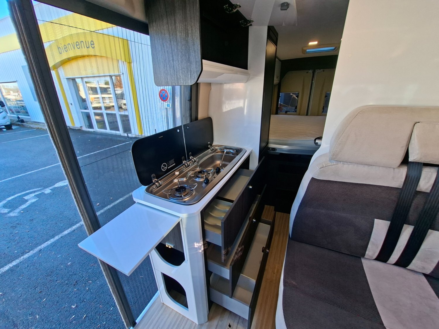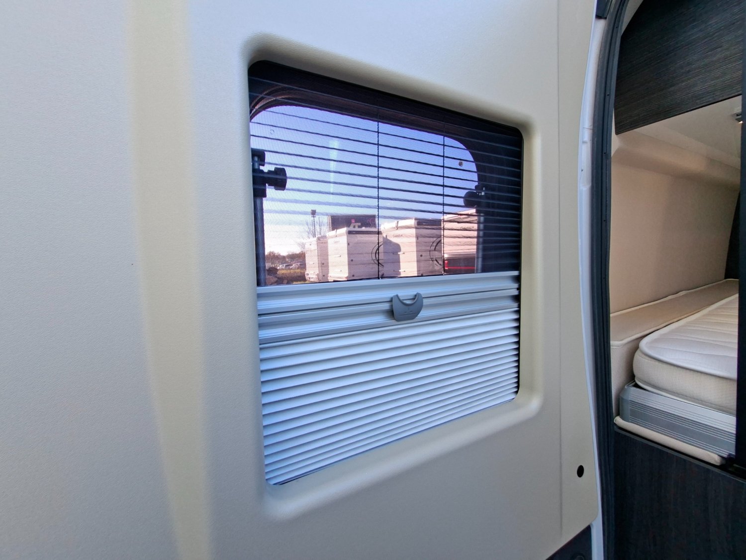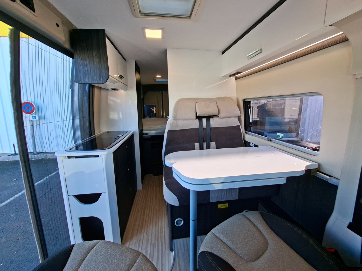 PORTE VELOS, CLIMATISATION PORTEUR, STORE, REFRIGERATEUR 140 L AES, MOUSTIQUAIRE DE PORTE, MARCHE PIED ELECTRIQUE, PRISE 12 V - USB - 230 V, PANNEAU SOLAIRE 120W, STORES CABINE, AUTORADIO, CHAUFFAGE COMBI D4