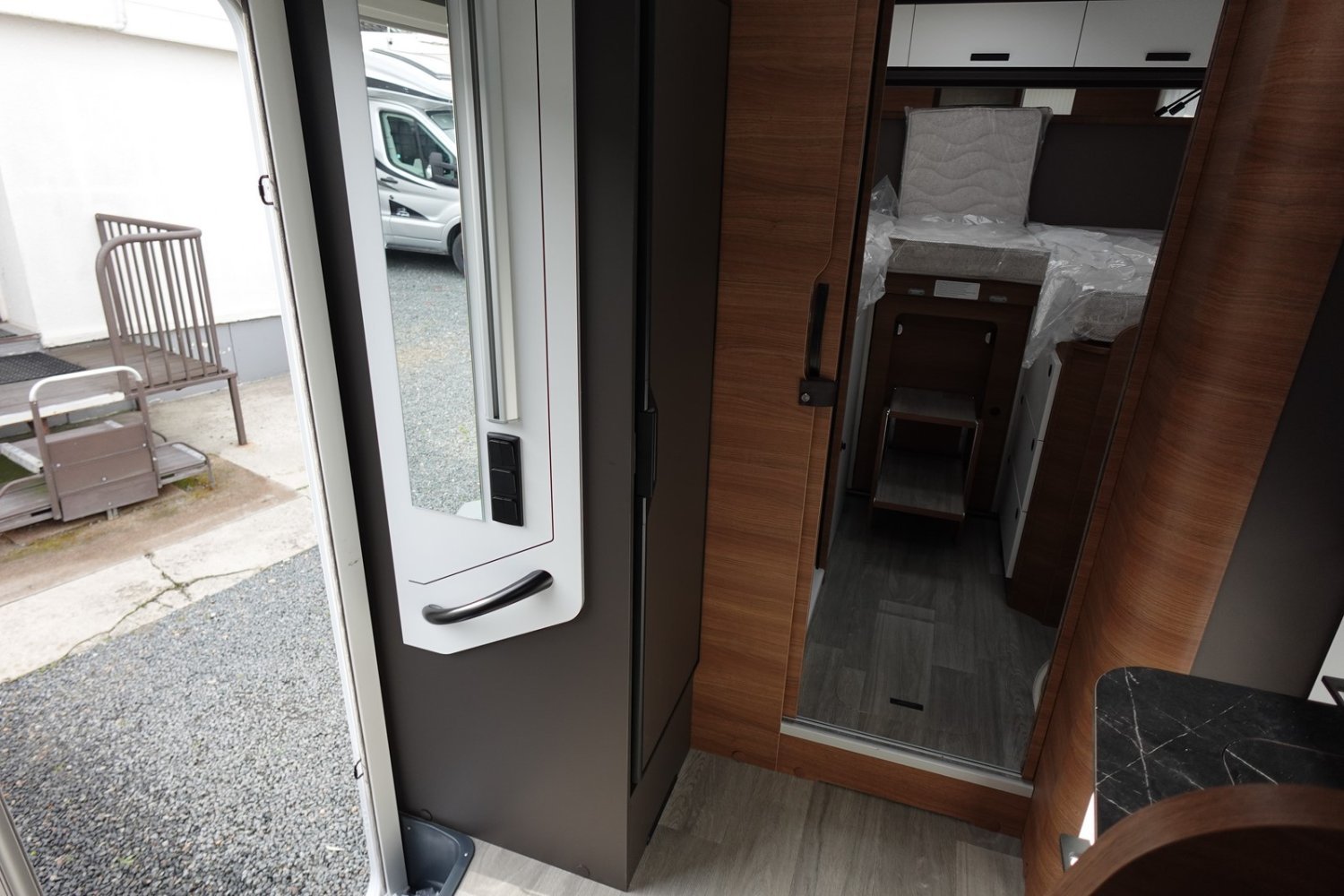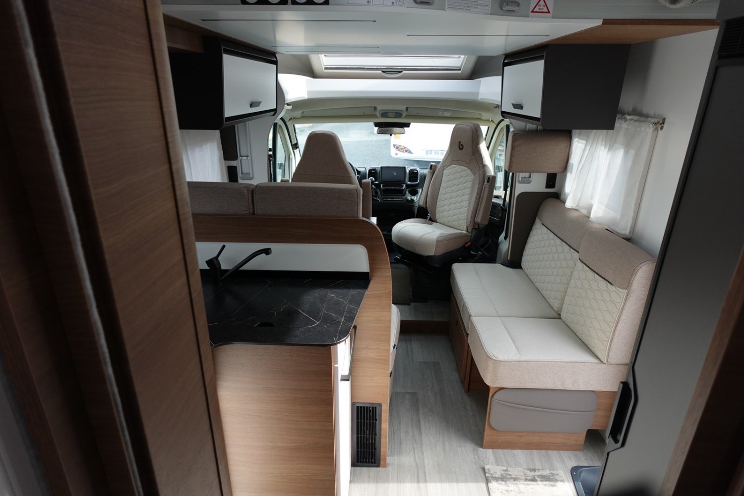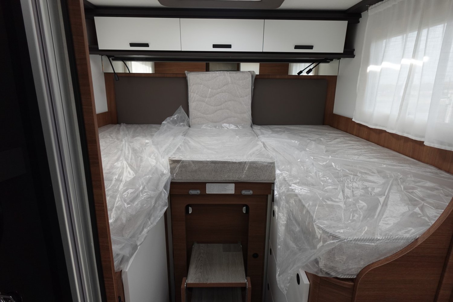 Magnifique profilé avec des lits jumeaux sur soute garage, une douche indépendante de l’espace WC, une cuisine avec de nombreux rangements, un lit de pavillon et un grand salon panoramique.