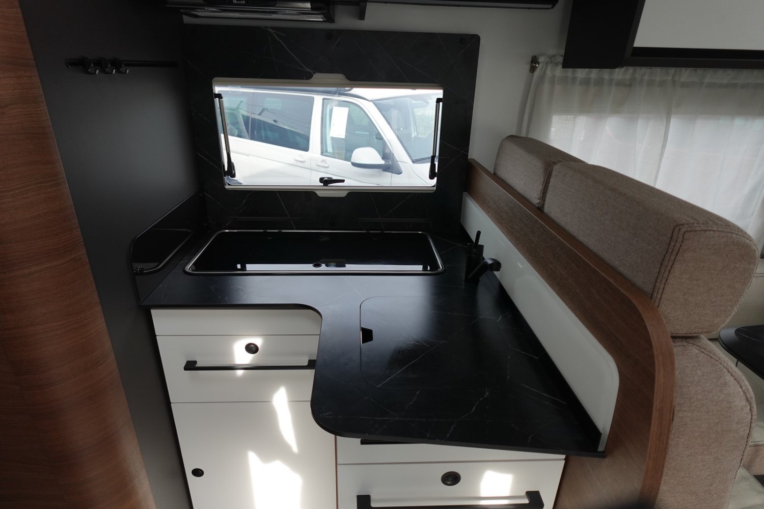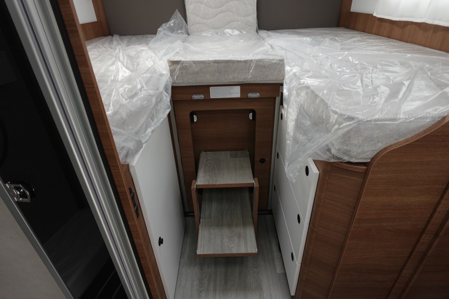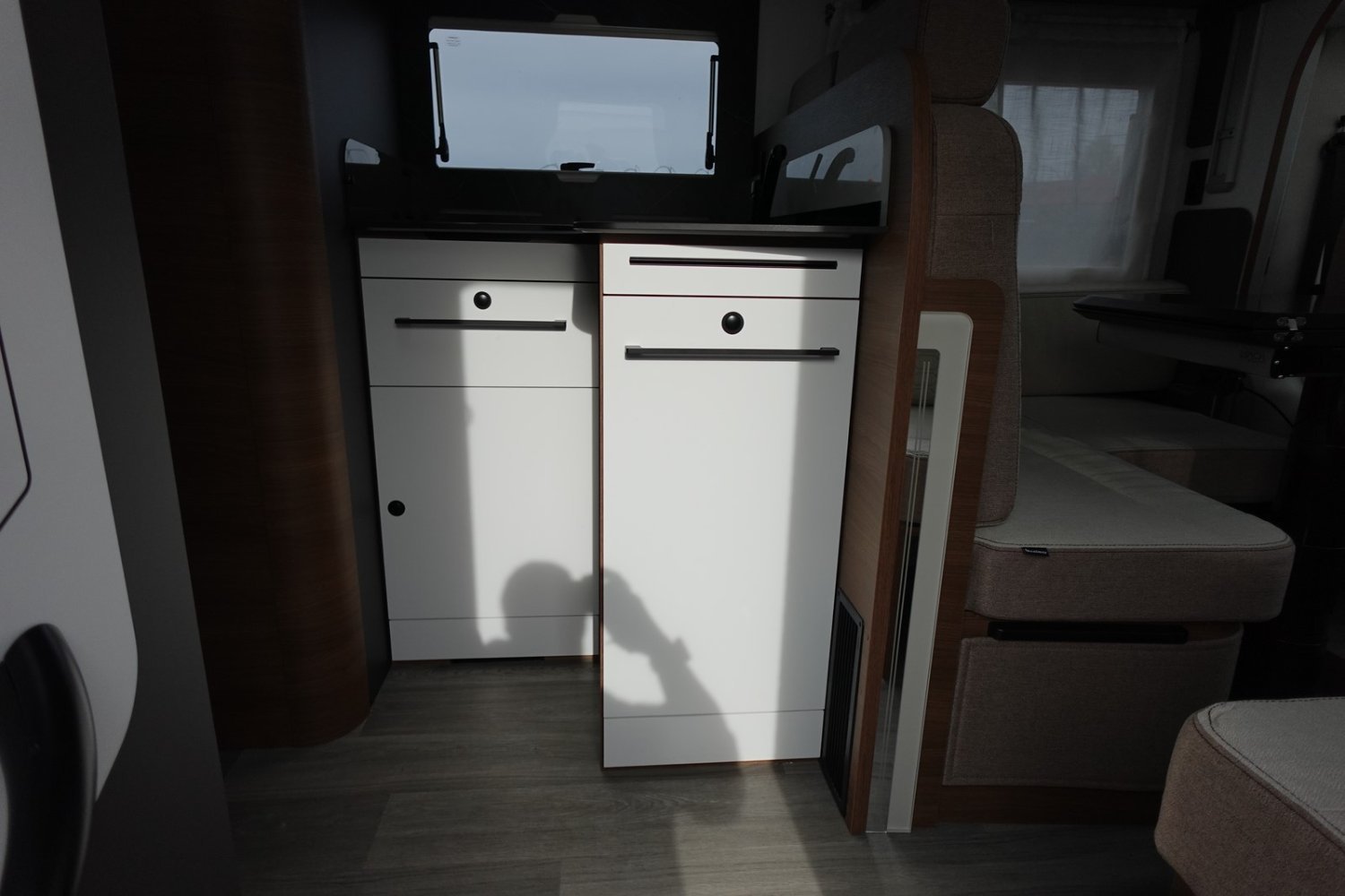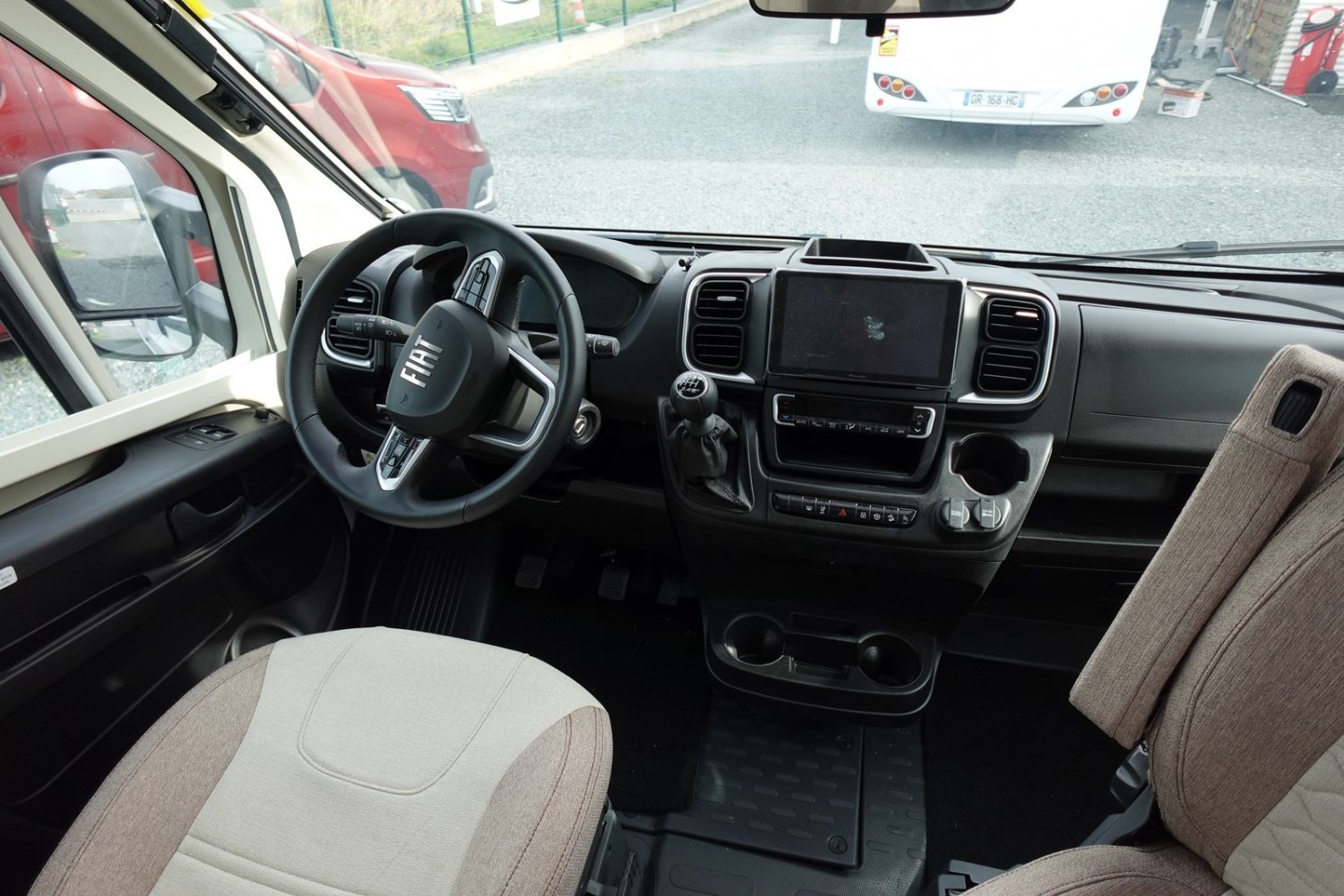 Magnifique profilé avec des lits jumeaux sur soute garage, une douche indépendante de l’espace WC, une cuisine avec de nombreux rangements, un lit de pavillon et un grand salon panoramique.