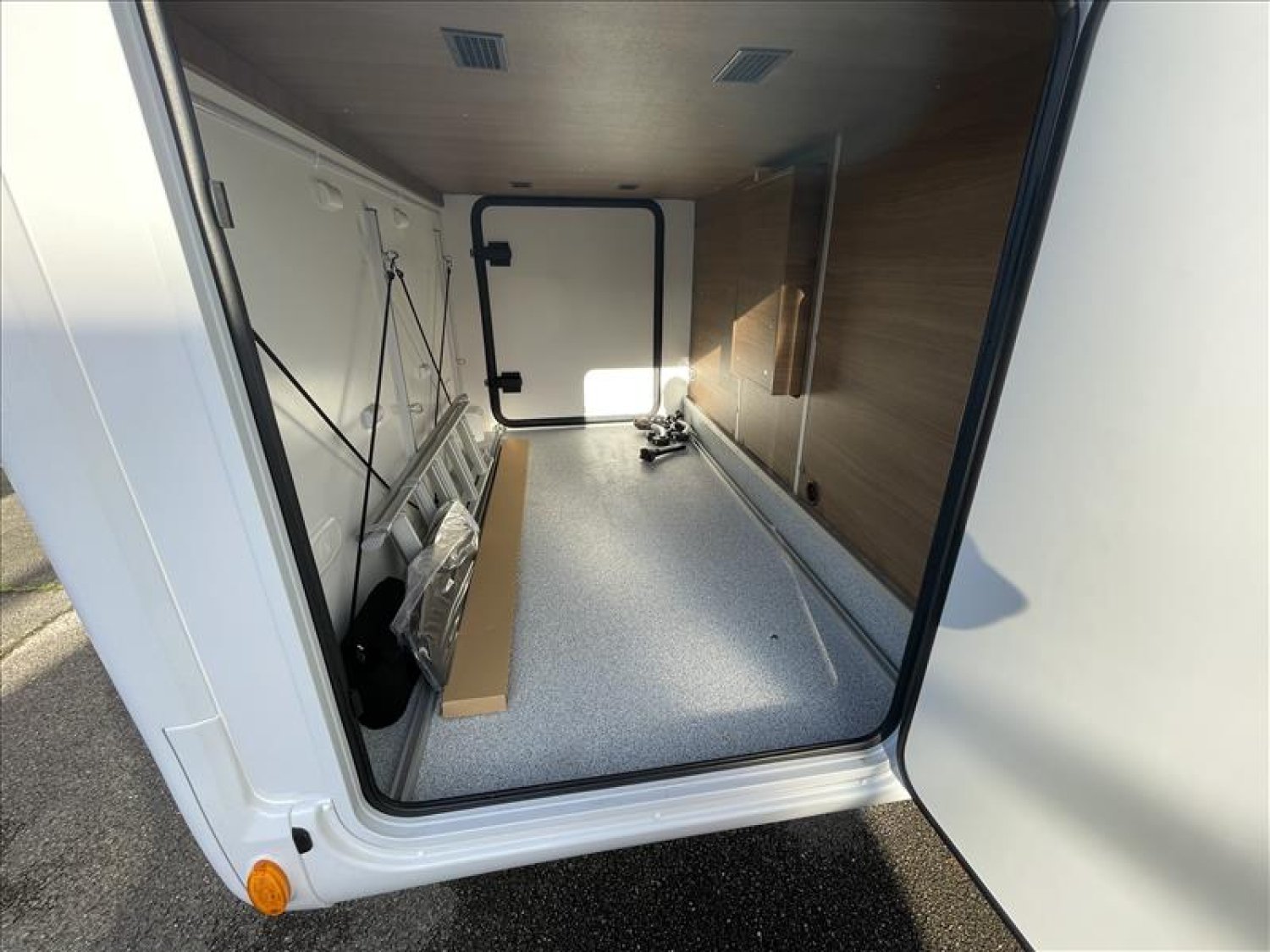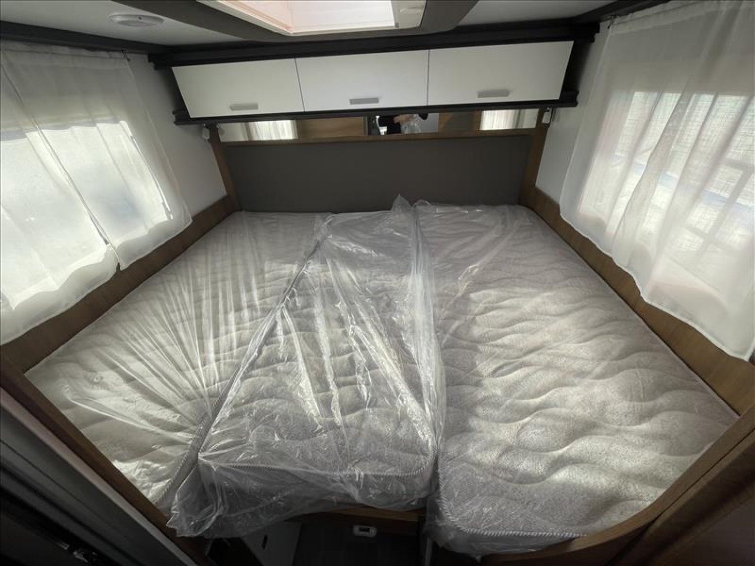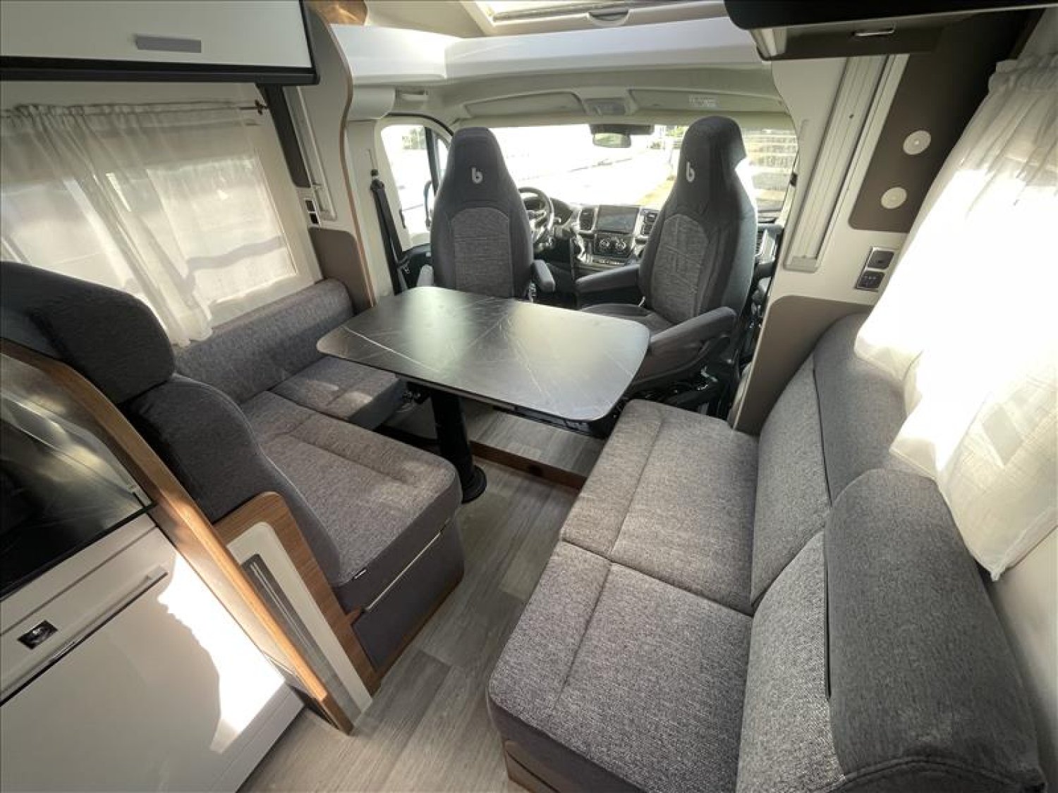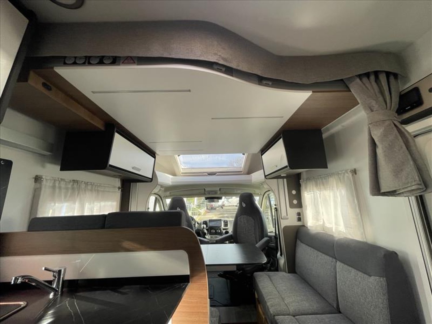 Pare-chocs arrière avec feux LED, Casquette de profile 100% polyester renforcé, Toit ouvrant panoramique cabine (avec store et moustiquaire), PrIses 230 et 12 V dans le garage, Radars de recul, Carrosserie et dessous plancher polyester, Lit de pavillon électrique 2 places (max. 230 kg), Prise USB dans la zone de couchage, Pré-installation 2ième batterie, Matelas de chambre à coucher haute densité, Hotte cuisine, Evier et réchaud 3 feux encastrés avec allumage électrique, Espace pour bouteilles de gaz : 2, Douche séparée avec porte-savon et porte serviette, Combine chauffage / chauffe-eau gaz - 4000 W