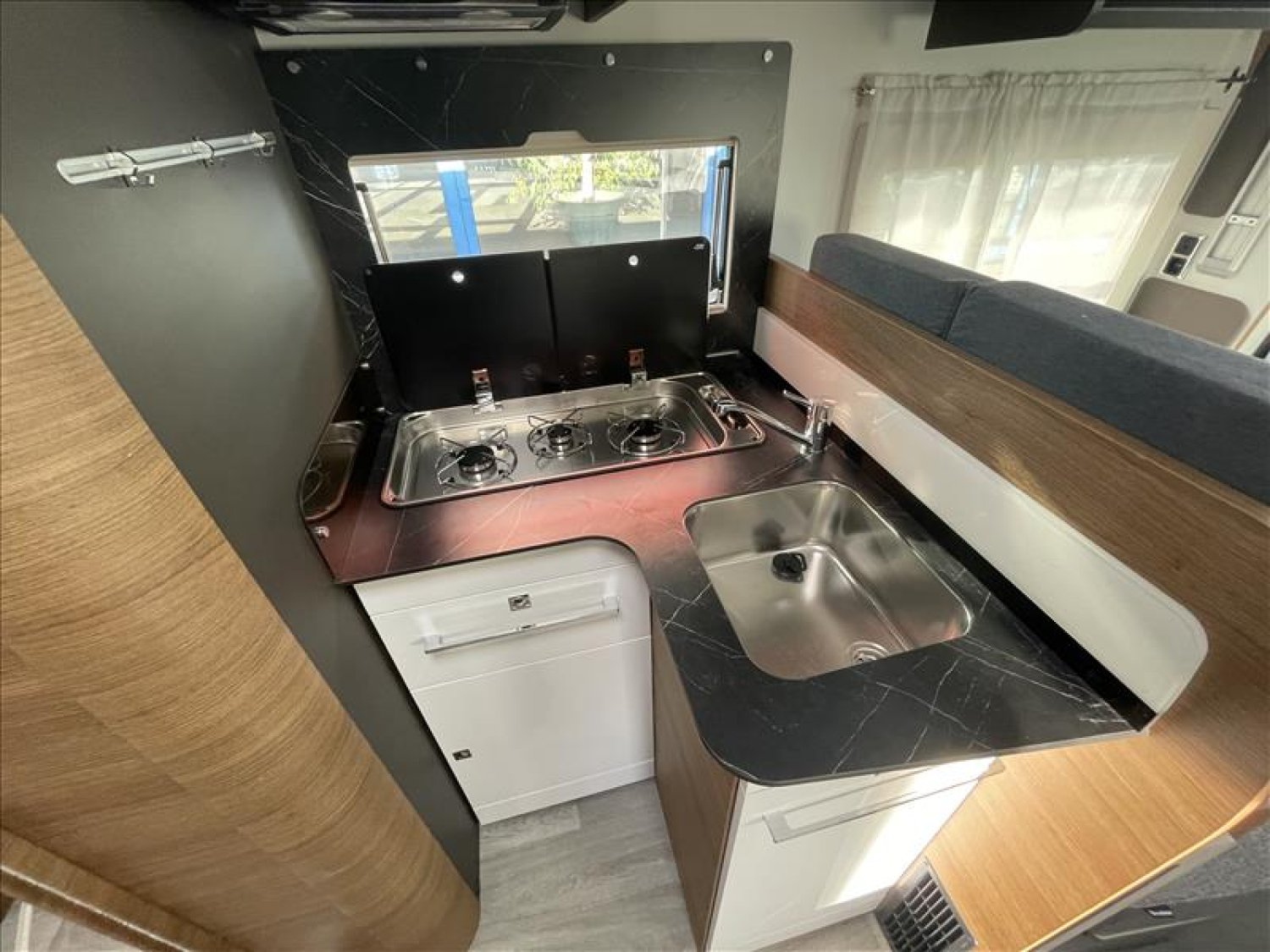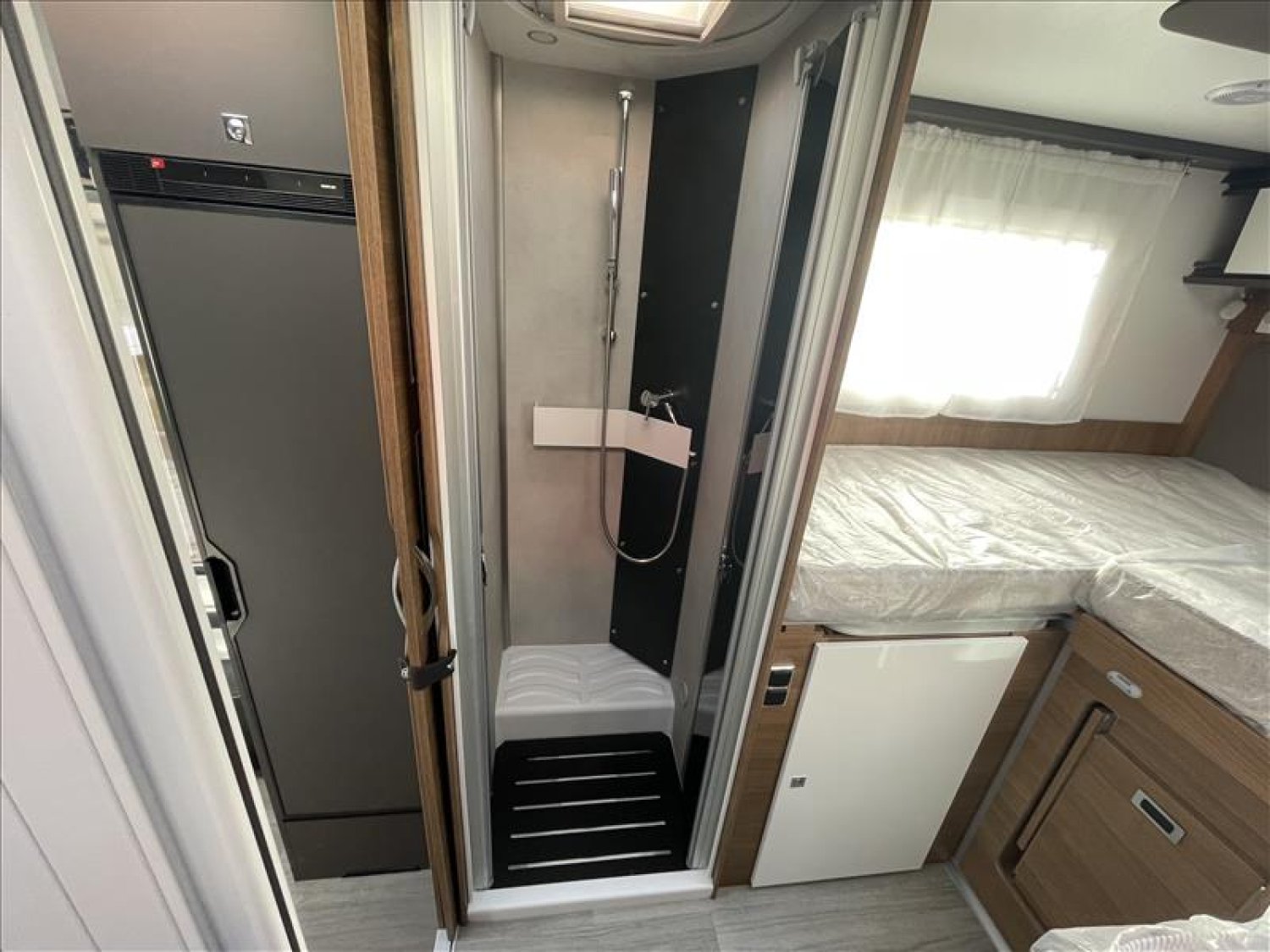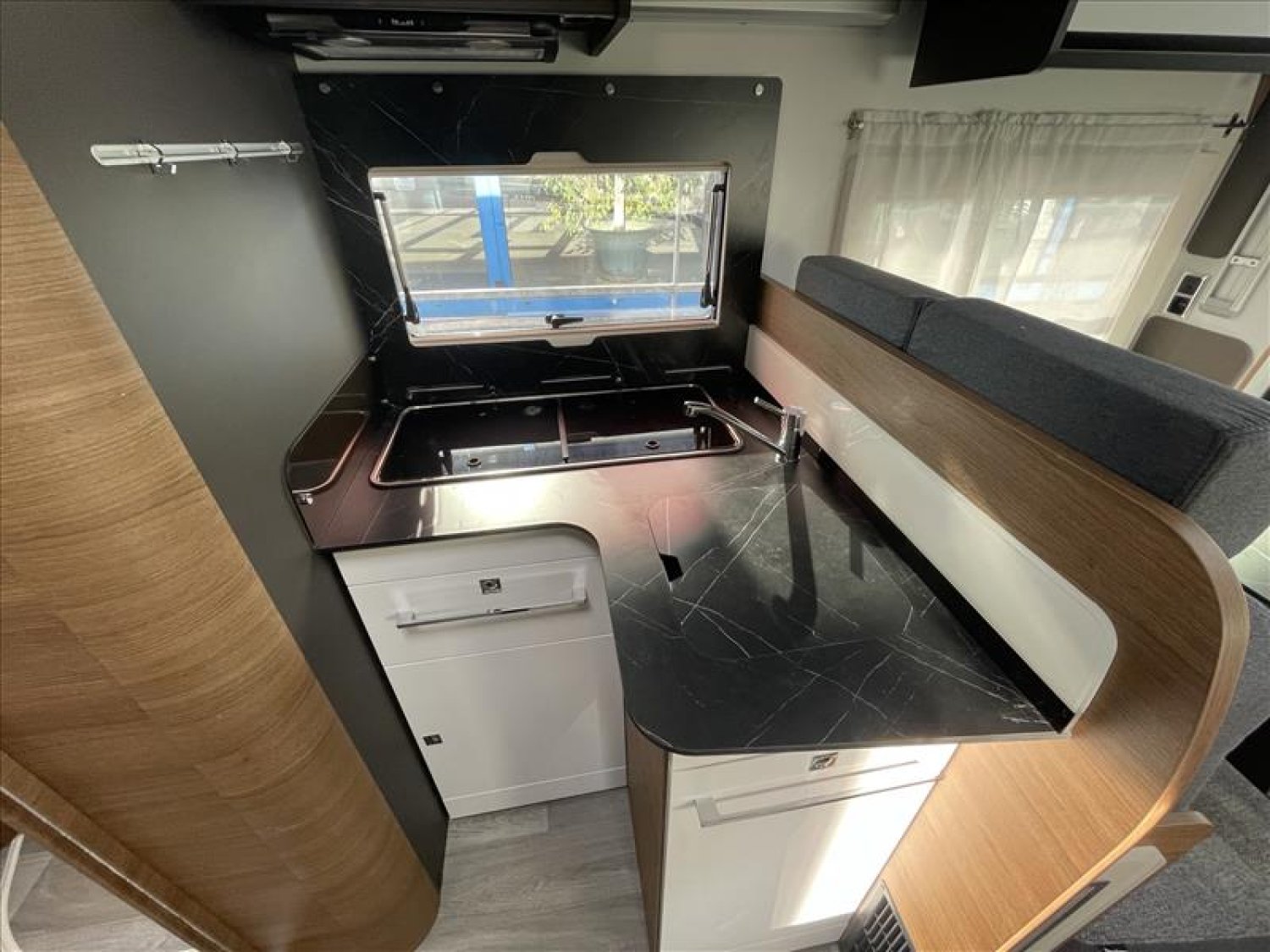 Pare-chocs arrière avec feux LED, Casquette de profile 100% polyester renforcé, Toit ouvrant panoramique cabine (avec store et moustiquaire), PrIses 230 et 12 V dans le garage, Radars de recul, Carrosserie et dessous plancher polyester, Lit de pavillon électrique 2 places (max. 230 kg), Prise USB dans la zone de couchage, Pré-installation 2ième batterie, Matelas de chambre à coucher haute densité, Hotte cuisine, Evier et réchaud 3 feux encastrés avec allumage électrique, Espace pour bouteilles de gaz : 2, Douche séparée avec porte-savon et porte serviette, Combine chauffage / chauffe-eau gaz - 4000 W