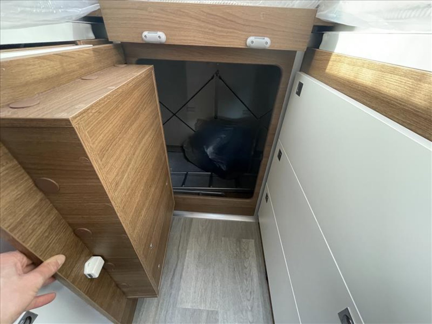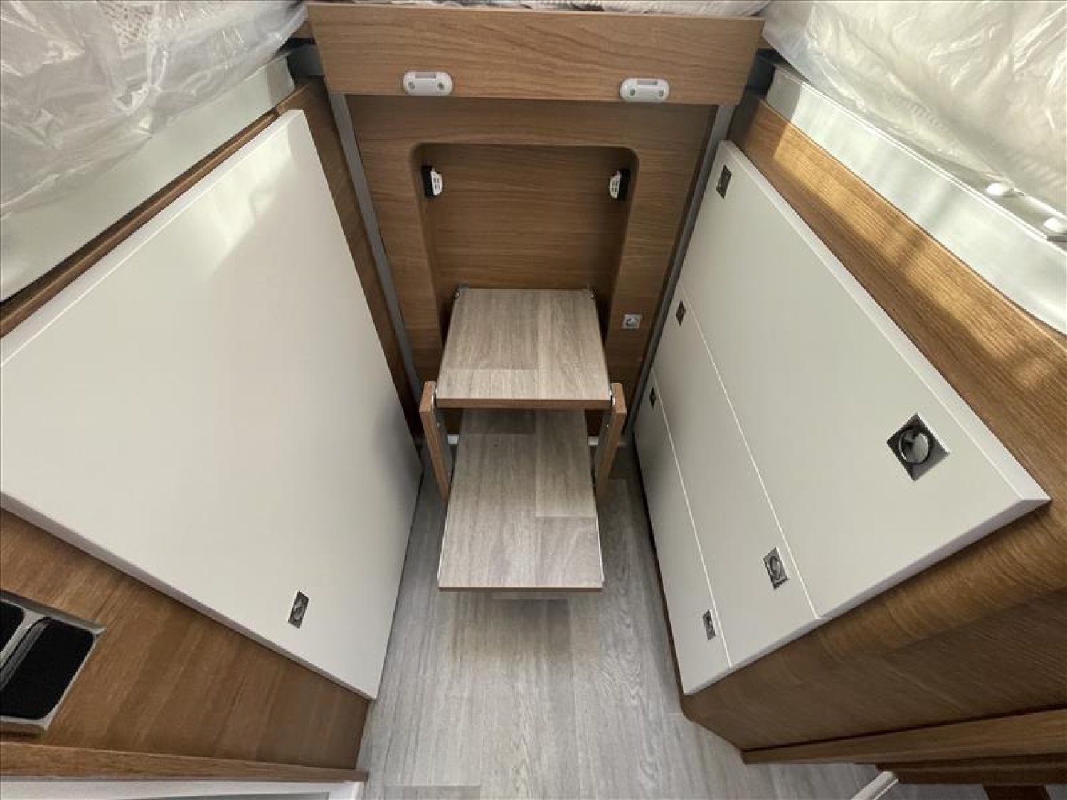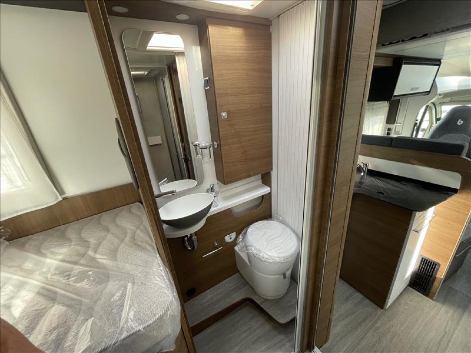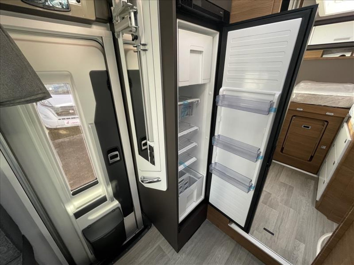 Pare-chocs arrière avec feux LED, Casquette de profile 100% polyester renforcé, Toit ouvrant panoramique cabine (avec store et moustiquaire), PrIses 230 et 12 V dans le garage, Radars de recul, Carrosserie et dessous plancher polyester, Lit de pavillon électrique 2 places (max. 230 kg), Prise USB dans la zone de couchage, Pré-installation 2ième batterie, Matelas de chambre à coucher haute densité, Hotte cuisine, Evier et réchaud 3 feux encastrés avec allumage électrique, Espace pour bouteilles de gaz : 2, Douche séparée avec porte-savon et porte serviette, Combine chauffage / chauffe-eau gaz - 4000 W
