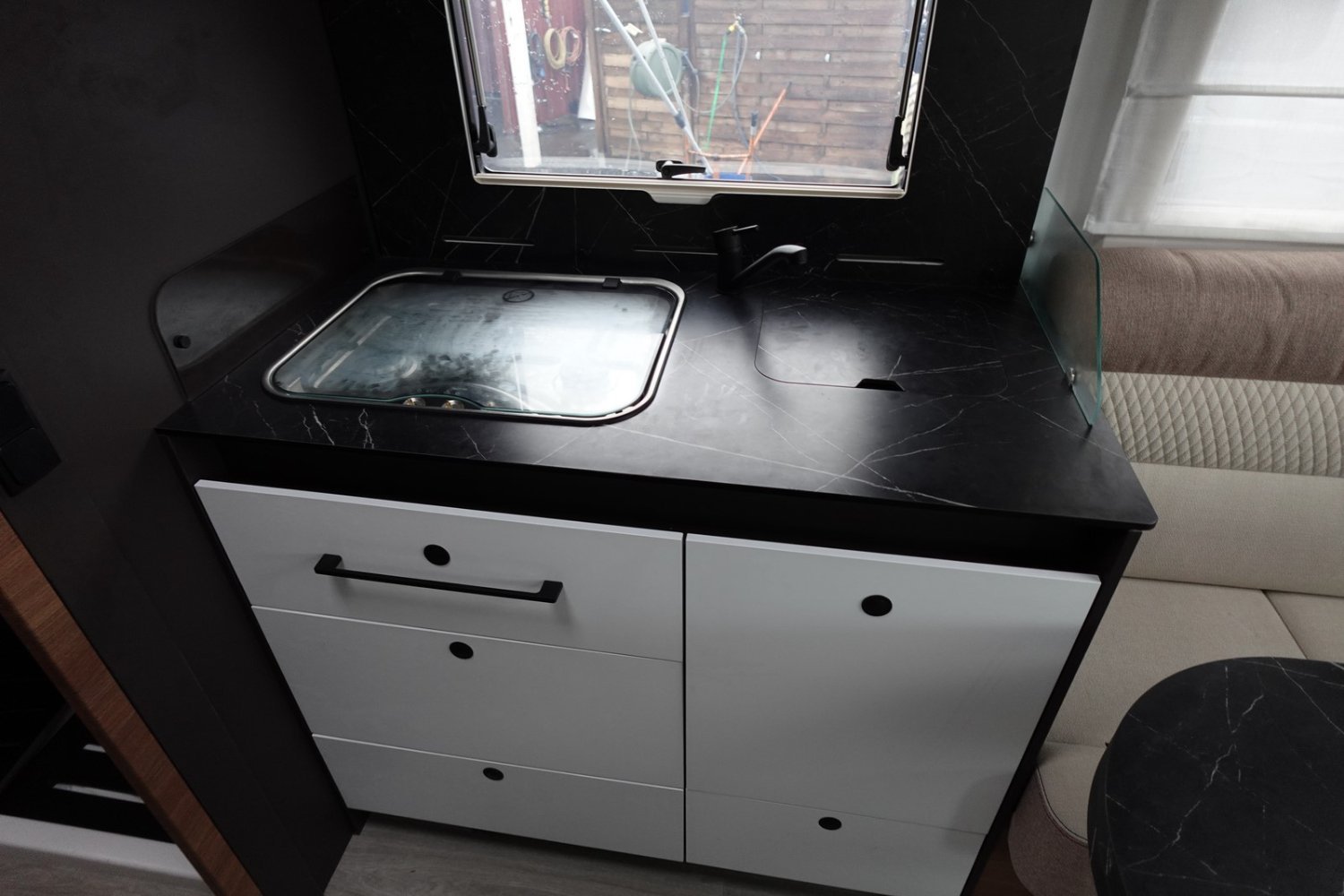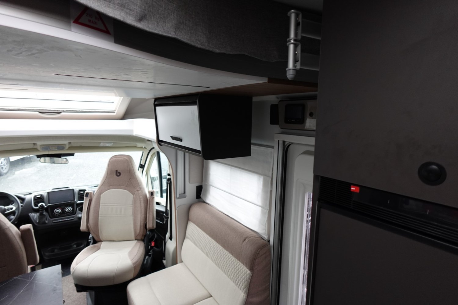 (Frein de stationnement électrique, Jantes en aluminium 16 pouces, Volant et pommeau de levier de vitesse gainés cuir, Radars de recul, Porte cellule XL centralisée avec 2 points + fenêtre + poubelle + moustiquaire, Radio DAB Pioneer avec écran tactile 9 pouces, Caméra de recul, Panneau solaire 200 W, Lumière extérieur LED, Rideaux occultation vitres cabine, Housses de sièges cabine, Skyview, Eclairage intérieur placard, Système de fixation bagages et rails dans le garage, Pneus 4 saisons, Isifix, Stores vénitien, Pré-installation 2ème batterie, Marchepied cellule électrique)