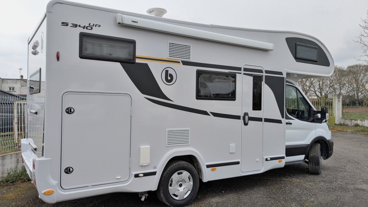 Véhicule en concession tout équipé avec les accessoires suivants : Panneau solaire 165 w, TV LED 20", Antenne omnidirectionnelle, Store extérieur, kit départ (Tuyau, cales, raccord P17...).