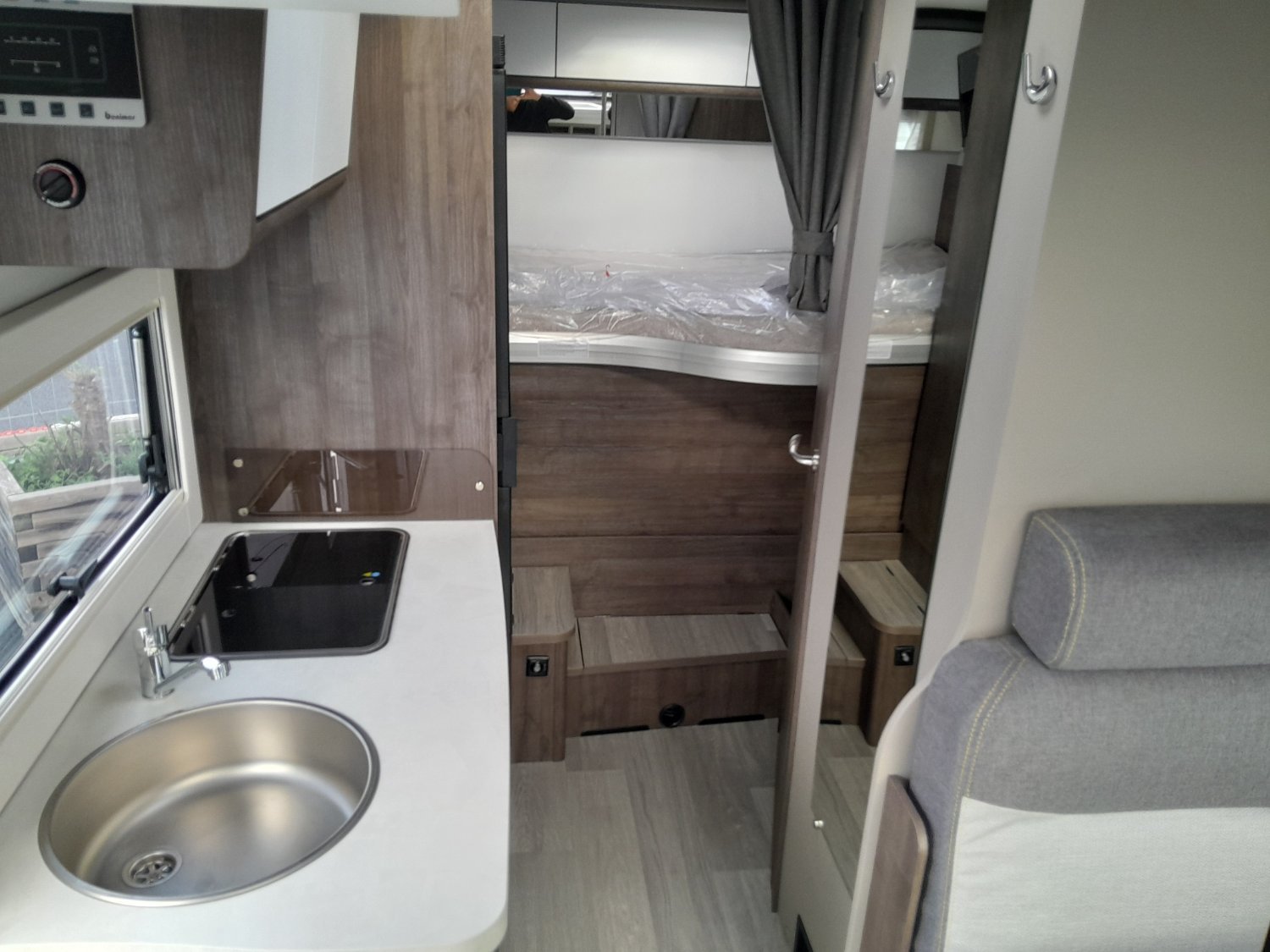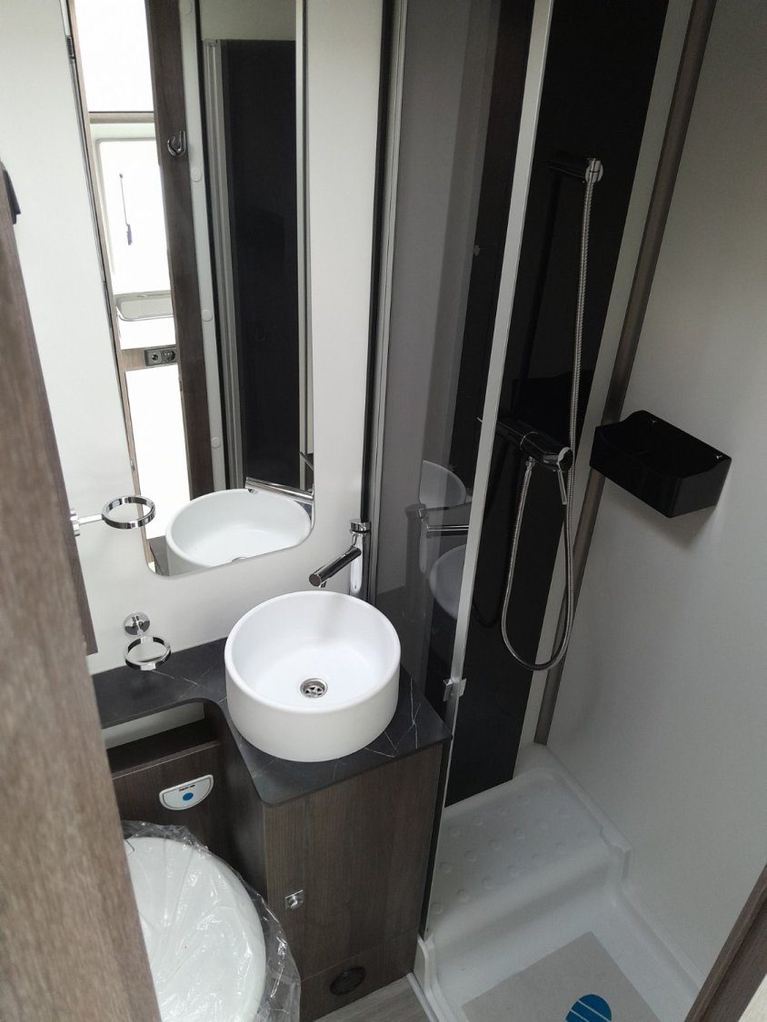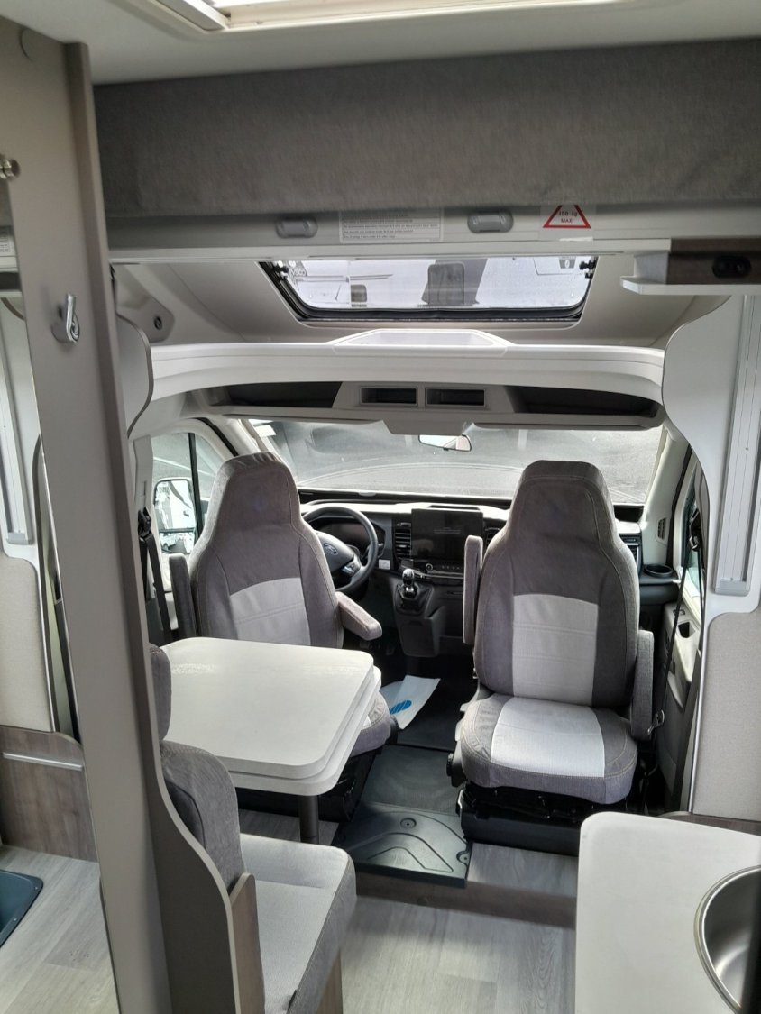 panneau solaire 200W + régulateur, store + LED, TV 20" + antenne omnidirectionnelle, skyroof XXL, frigo XXL à compression 150L avec congèl, SDB DUOSPACE, Webasto 4000W Diesel, radar de recul, occultants et moustiquaires, autoradio double DIN 12", aide à la conduite, compact mais spacieux, grande soute avec lit réglable en hauteur.