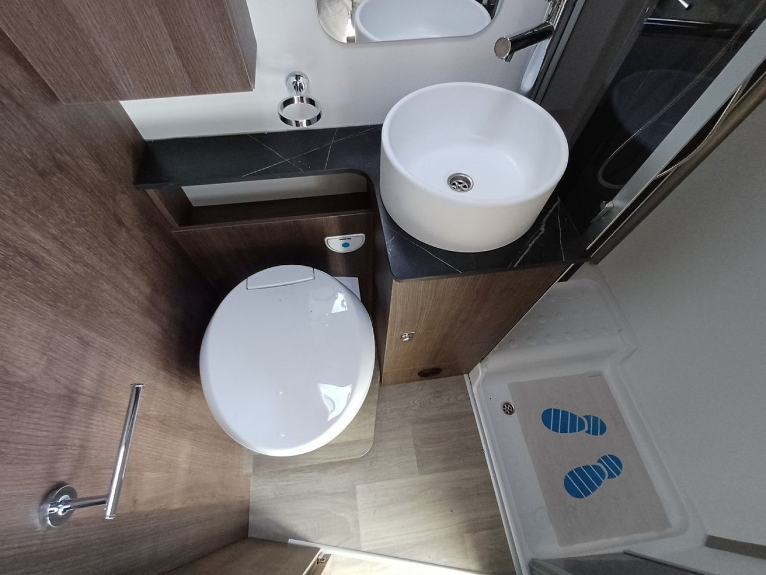 - Kit départ (batterie 12 V, 2 cales, rallonge 230 V, tuyau eau, liquide WC, extincteur, gilet jaune, 2 triangles)