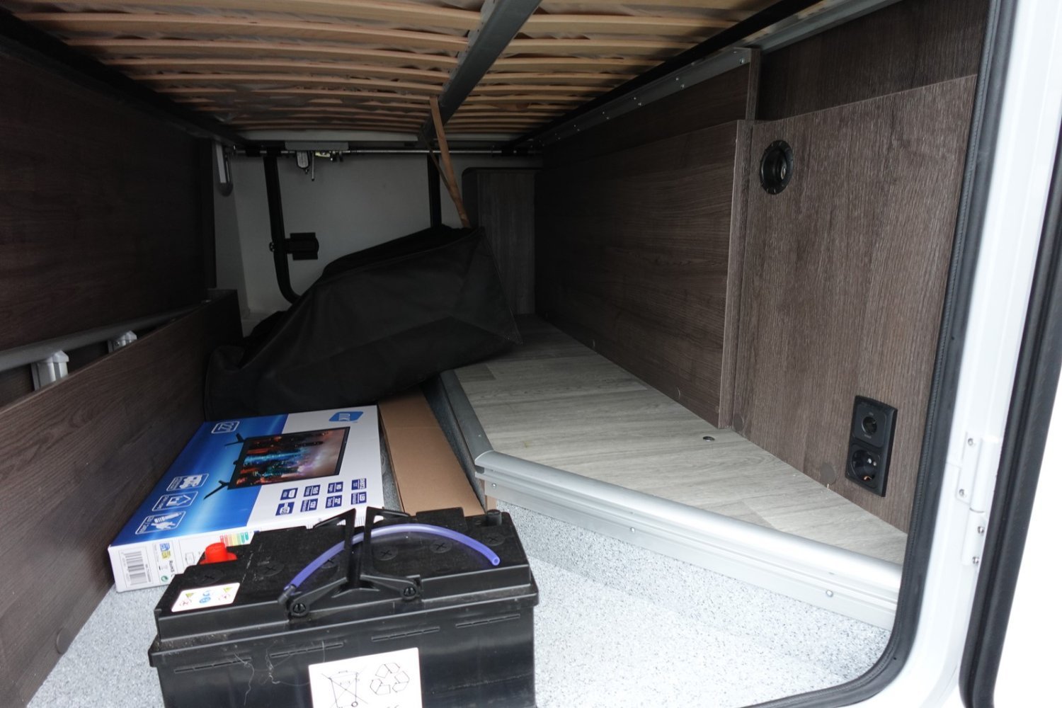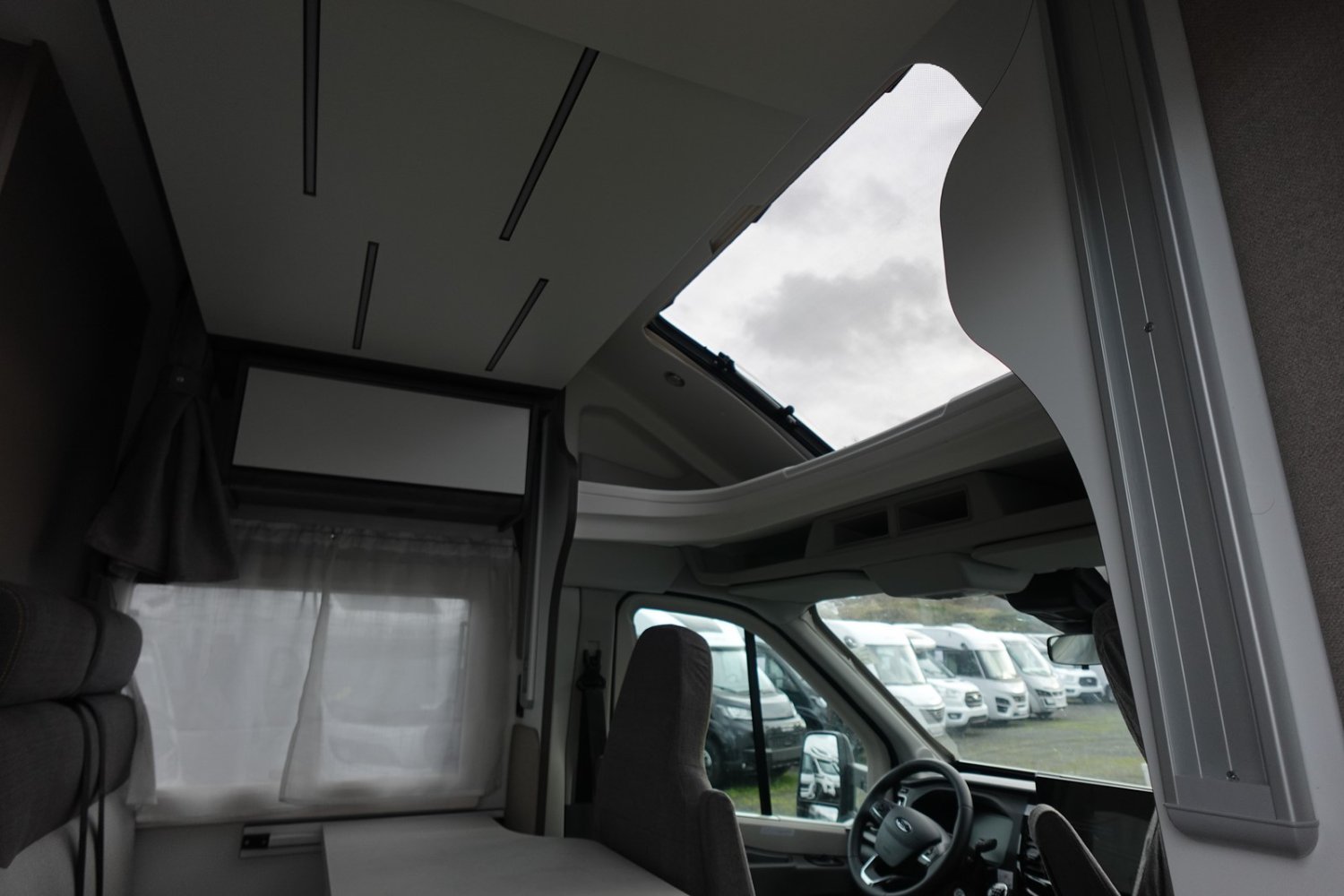 (Moteur 165 CV, Panneau solaire 200 W avec régulateur MPPT, Rideaux occultation vitres cabine, Porte cellule avec fenêtre + poubelle + moustiquaire, Lumière extérieure LED, Télévision 20 pouces, Antenne TV omnidirectionnelle, Pré-installation 2ème batterie, Radar de recul, Store extérieur, Eclairage intérieur placard, Housses de cabine, Kit départ)
