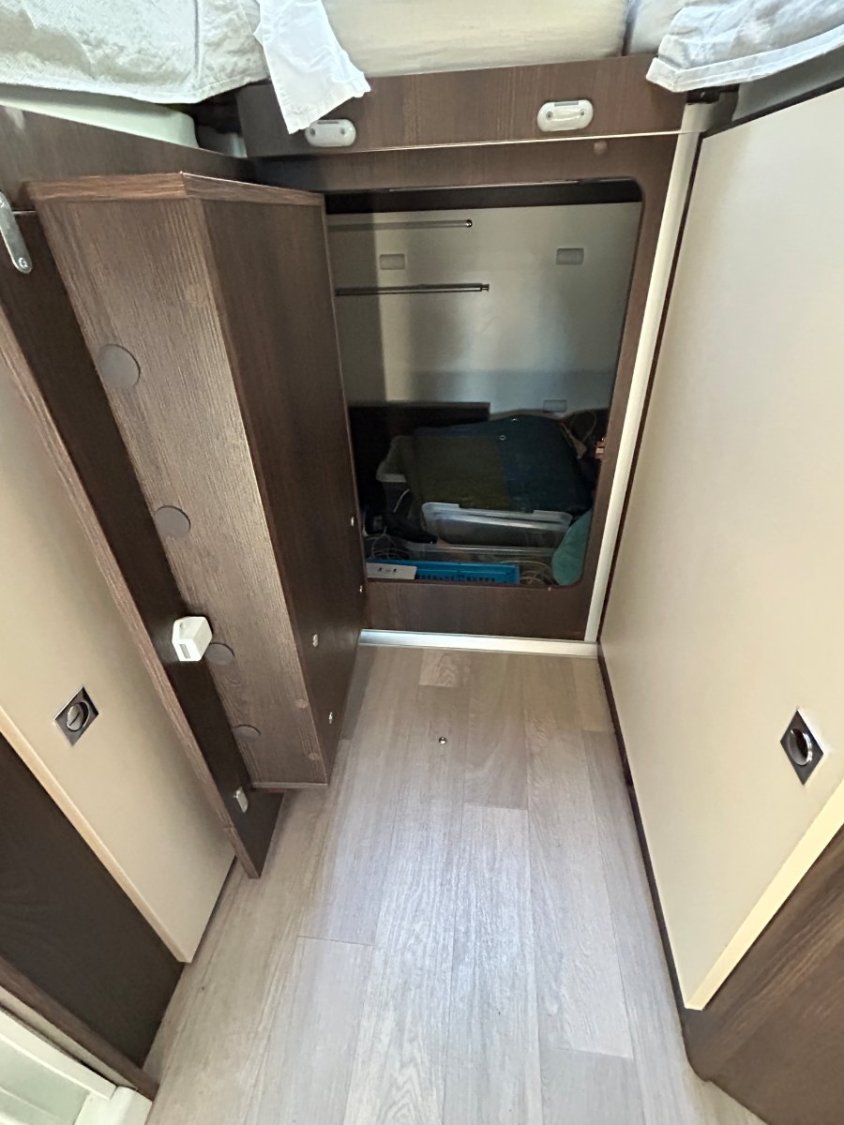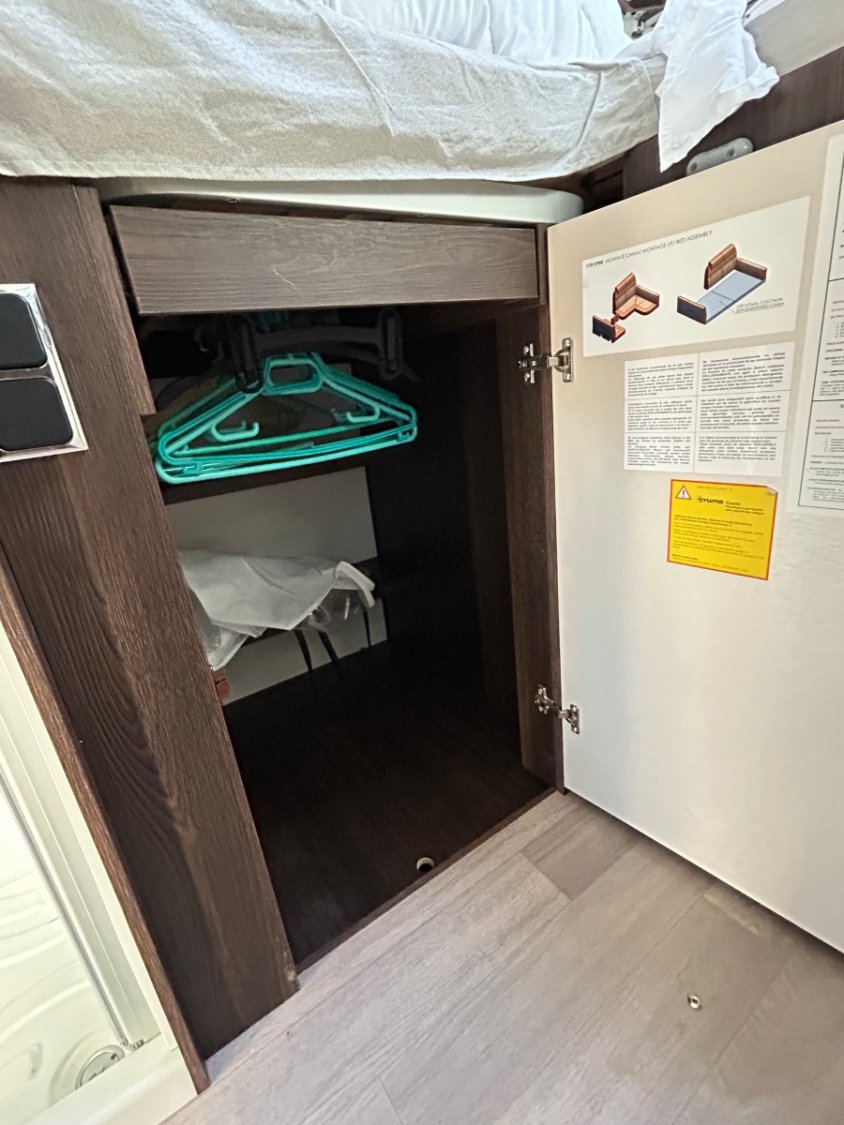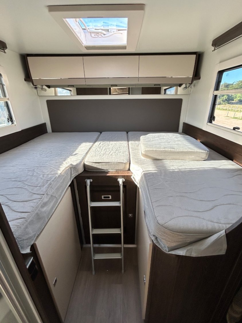 • Lit king size sur soute (ou lits jumeaux) (190×85 et 188×85 cm) + lit pavillon électrique (191x140cm) + lit dinette convertible (210x90cm)