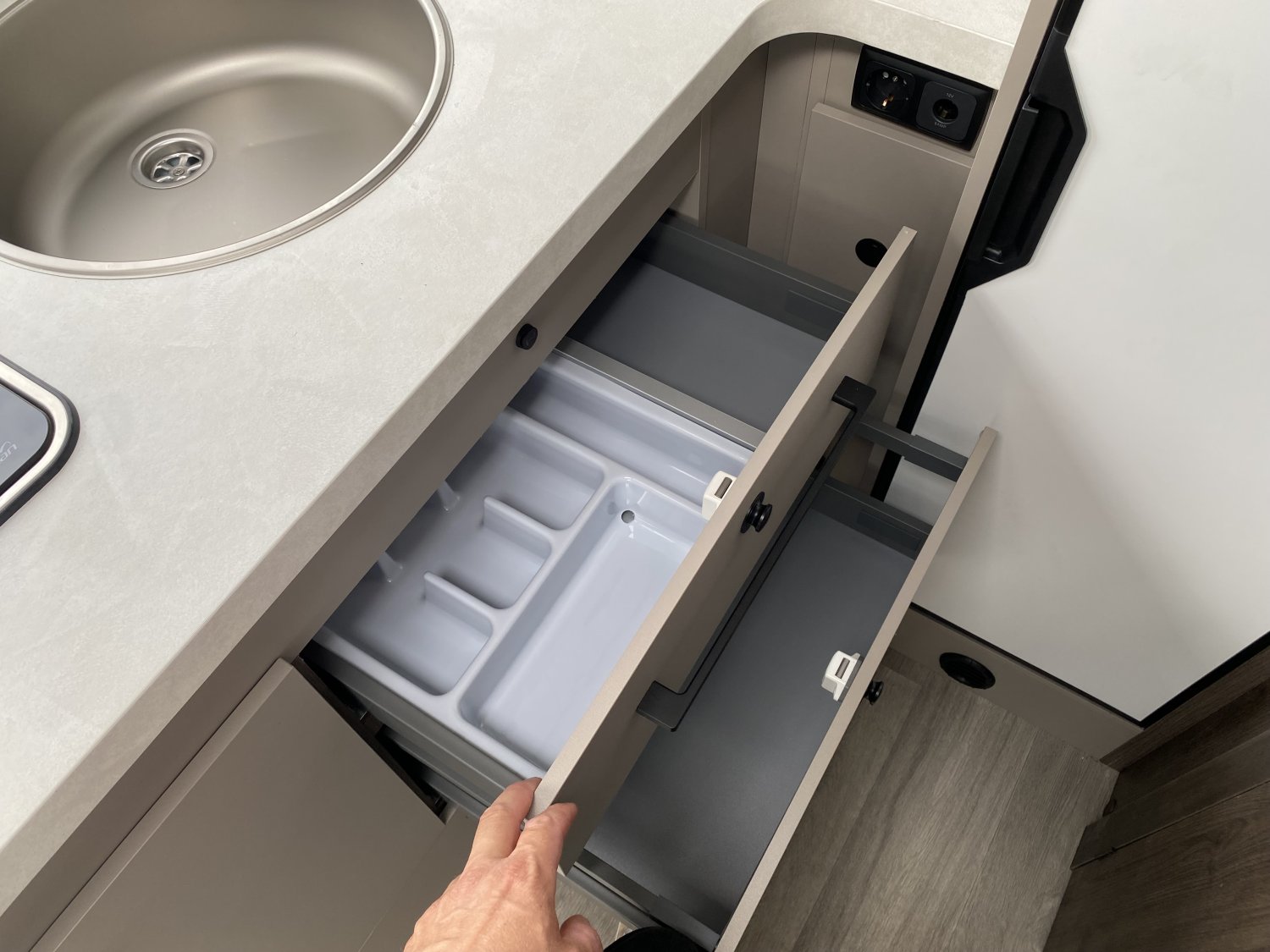 Espace pour bouteilles de gaz :1, Chauffe-eau gaz, Chaudière utilisant carburant véhicule Webasto - 4000 W, Prises 230 et 12 V dans le garage, Grand réfrigérateur / congélateur à compression 150 l, Porte cellule XL, ISOFIX sur sièges de salle à manger (Pack PLUS), Douche séparée, Grand salon en L, Pied de table électrique télescopique, Réfrigérateur à compression de 150 litres, Coffres sous le sofa et derrière l'armoire avec serrures