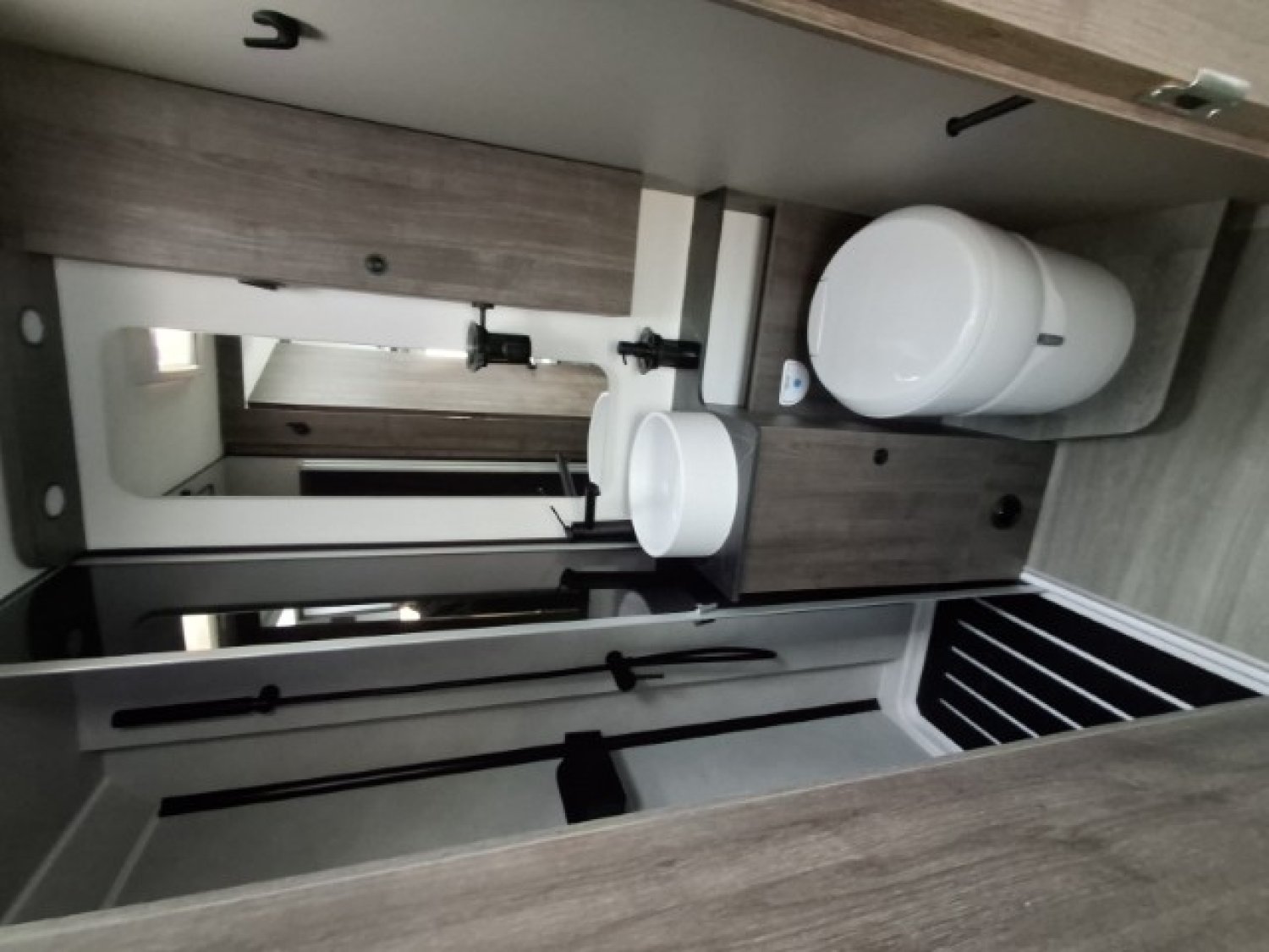 Profilé compact et élégant, avec salon convivial, lit pavillon électrique et grande salle de bain pour voyager confortablement en toute liberté.