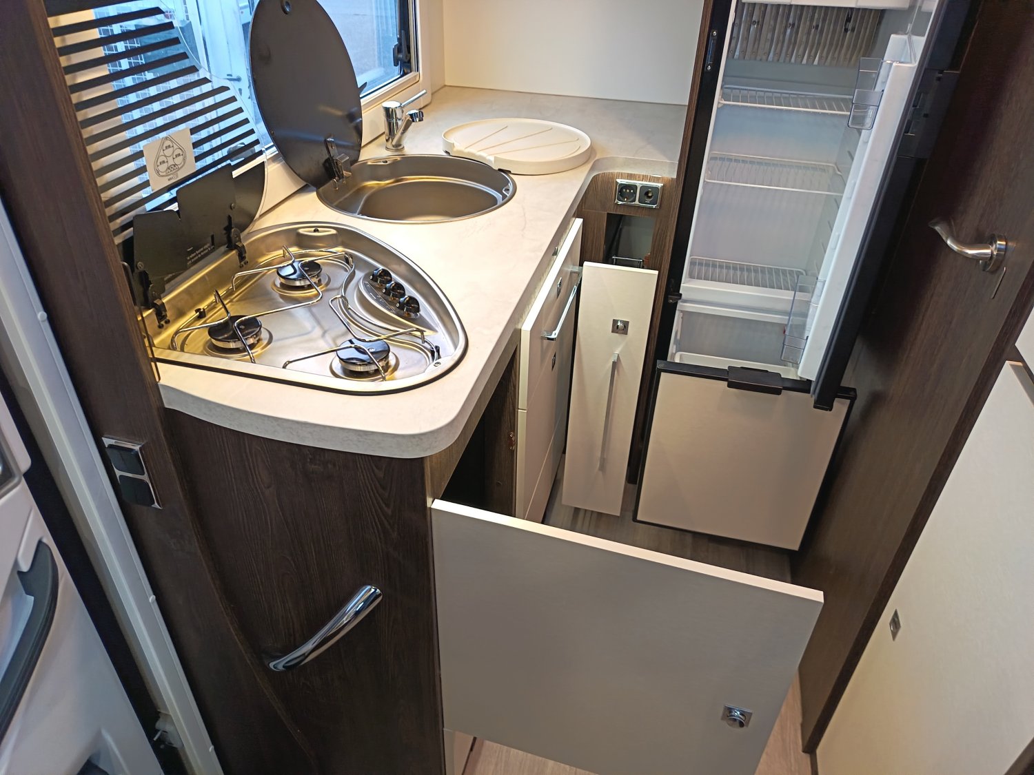 Très belle occasion compacte de seulement 5m99. Implantation astucieuse et très appréciée offrant un salon de très grande taille, un lit de pavillon électrique et une cuisine avec un grand plan de travail et de nombreux rangement. La salle de bain dispose d'un cabine de douche indépendante.