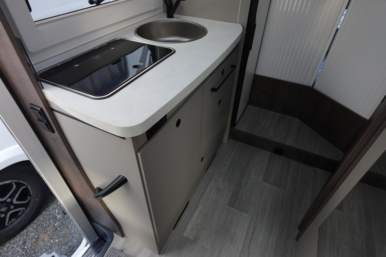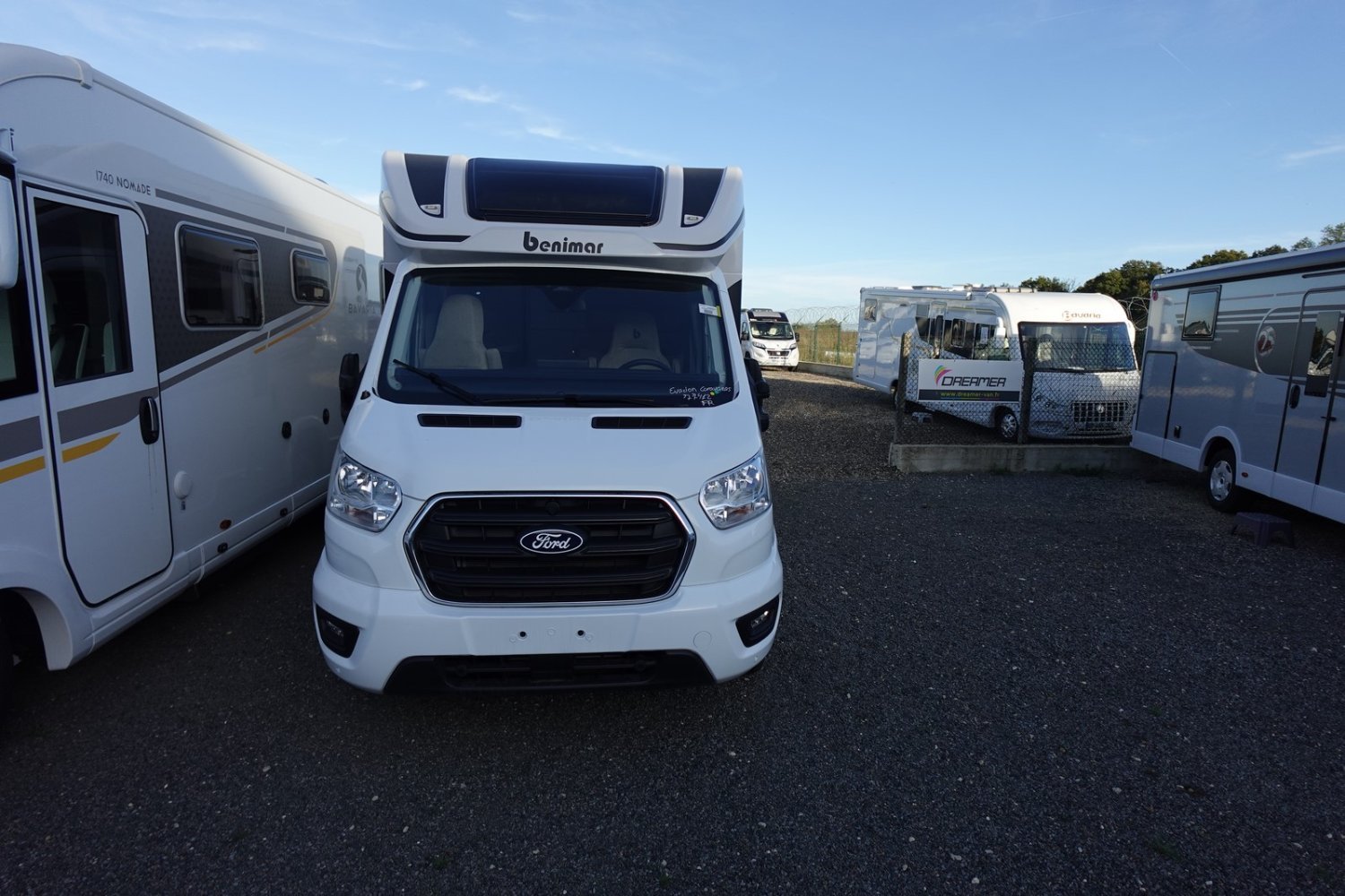 Magnifique petit profilé comprenant un grand salon avant panoramique avec banquette face/face, une douche séparée, un lit de pavillon électrique, une cuisine avec de nombreux rangements, un lit arrière 1 place transformable en grande soute et un dressing arrière.