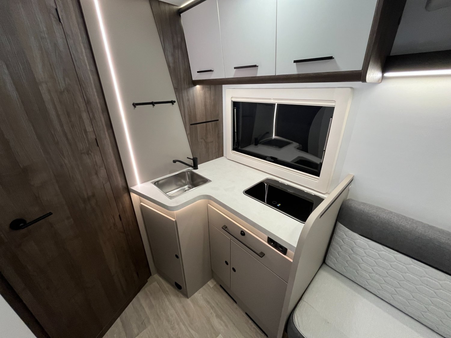 Camping-car profilé neuf, collection 2026, motorisation Ford 165 ch avec boîte automatique. Équipé du Pack Plus comprenant un panneau solaire 200W, une moustiquaire de porte et des radars de stationnement, ainsi qu’une batterie cellule 100 Ah Gel pour plus d’autonomie. Longueur 6,99 m, largeur 2,30 m, hauteur 2,89 m. Lit de pavillon, 4 couchages et 4 places carte grise. Aménagement spacieux et fonctionnel, idéal pour voyager en couple ou en famille dans un confort optimal.