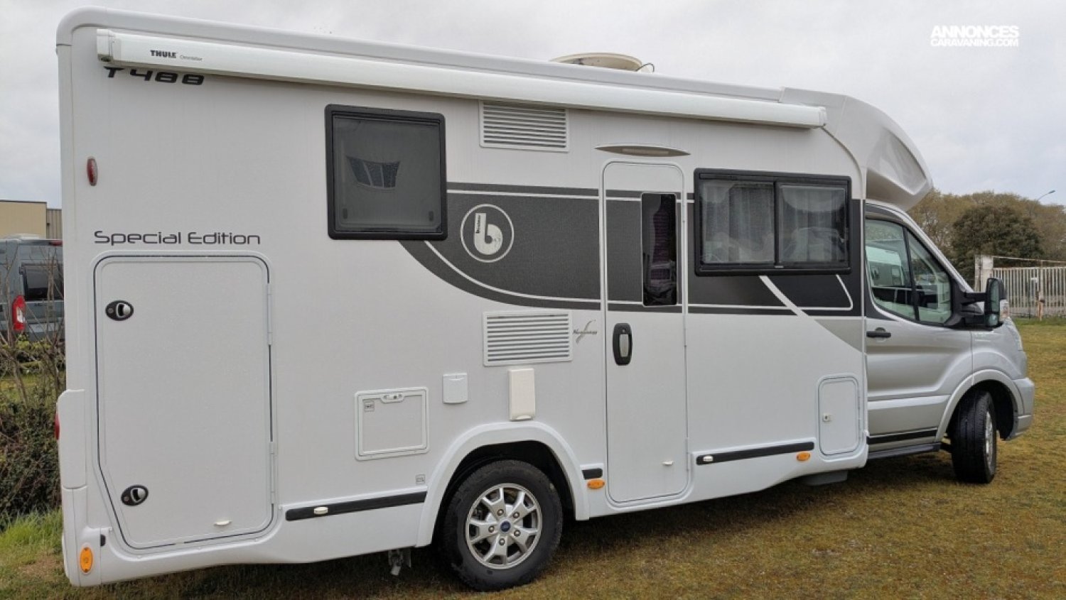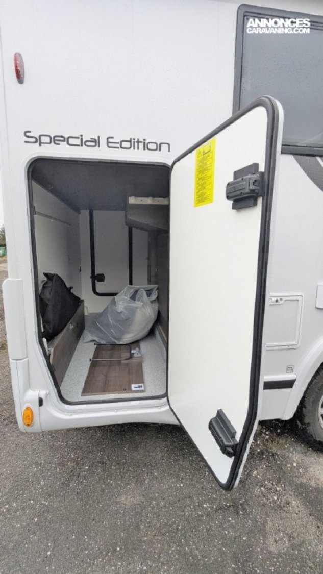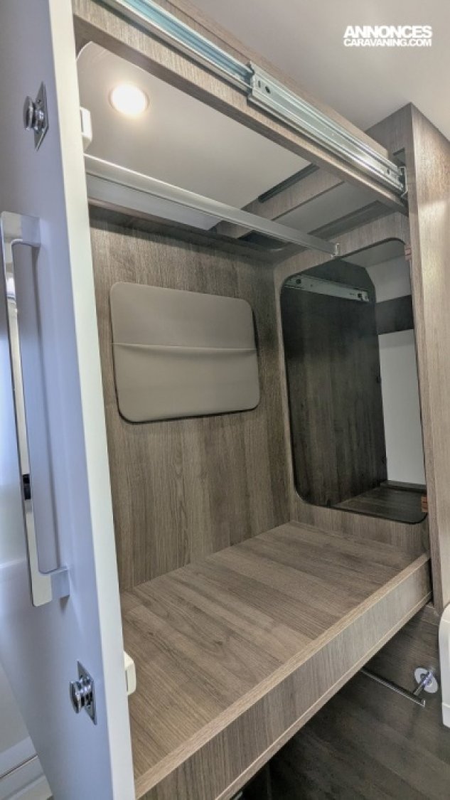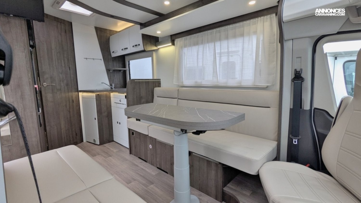Autres atouts inclus : Carrosserie polyester, TECHNOLOGIE SANS BOIS ISB (inserts polyuréthane + XPS), Fenêtres double vitrage D-Lux affleurantes, Réfrigérateur/congélateur (140l) AES+ tiroir 9 bouteilles 1,5l, Fenêtre et moustiquaire sur porte cellule, Lit pavillon électrique, ABS, ESP, airbag conducteur et passager, régulateur de vitesse, sièges conducteur et passager tournants, hauteur et accoudoirs réglables. Assises inclinables, fermeture centralisée, volant gainé cuir et réglable, radio avec commandes au volant, frein à main escamotable, vide poche pavillon, cabine type aéronautique, climatisation cabine, phares antibrouillard.