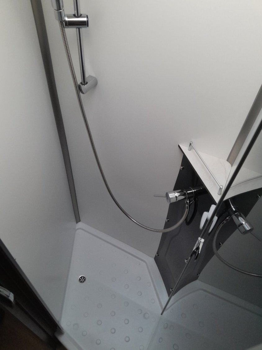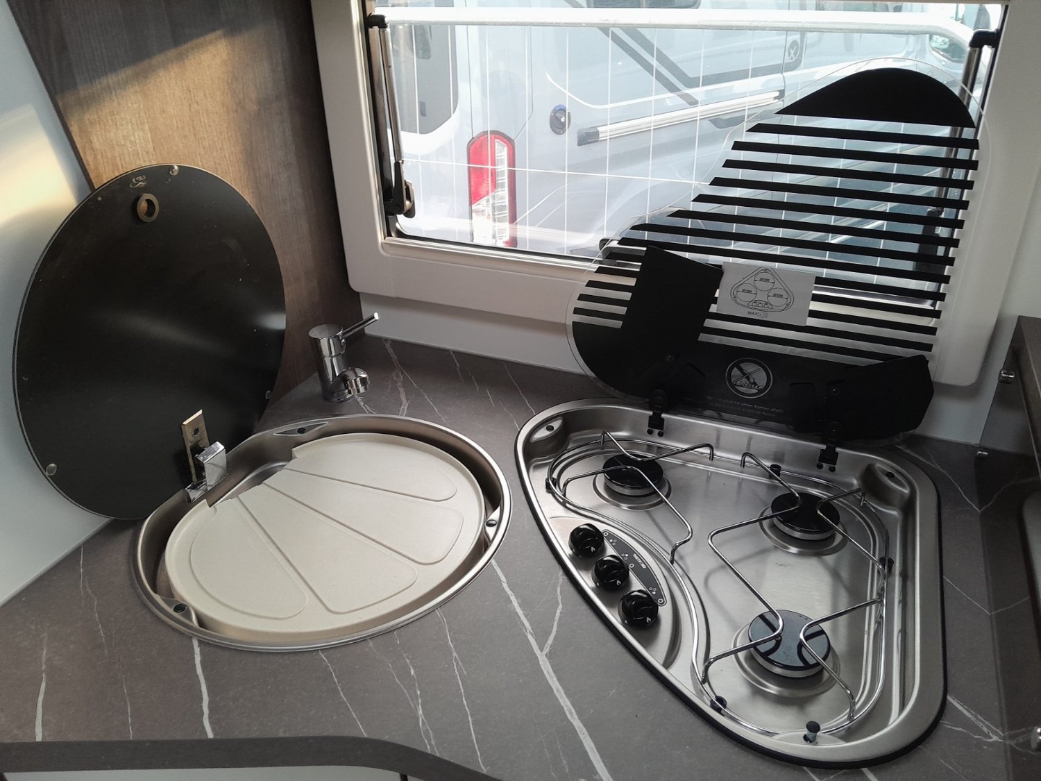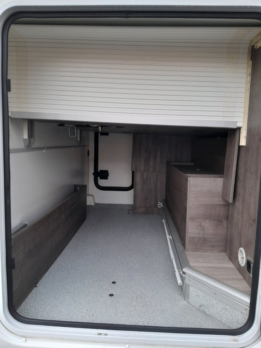 autoradio double DIN, caméra de recul, panneau solaire, grand frigo 140L, grande soute avec lit réglable en hauteur.