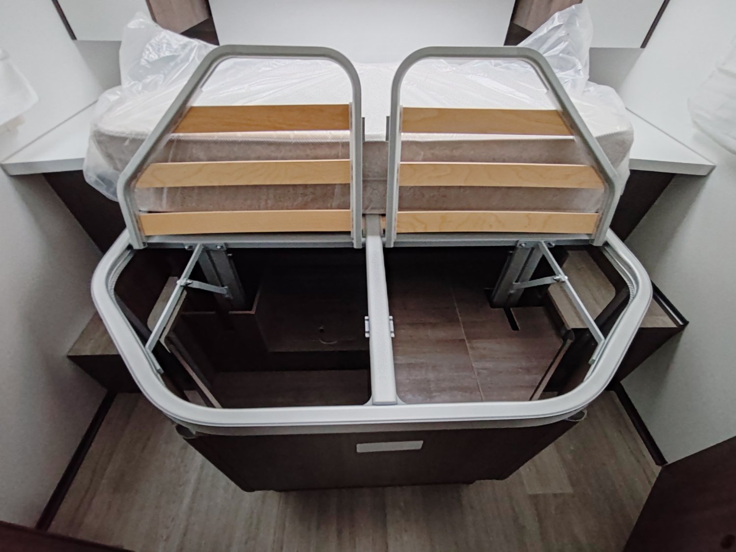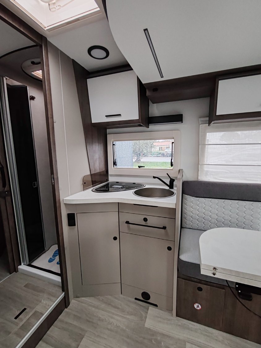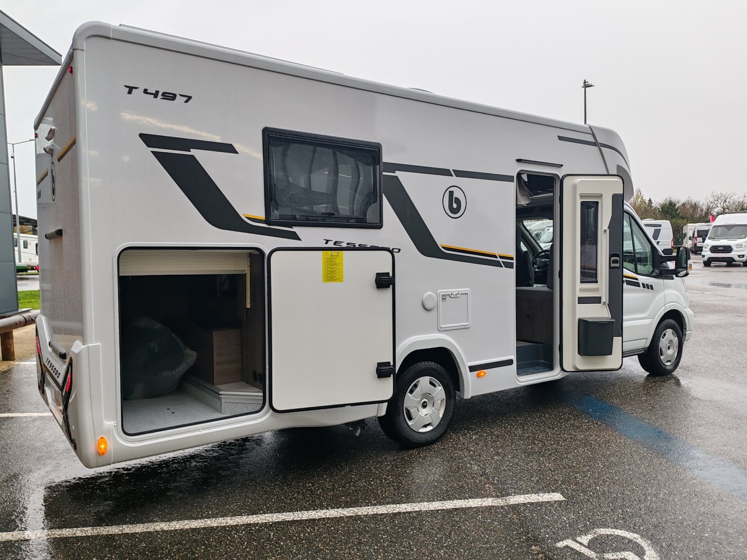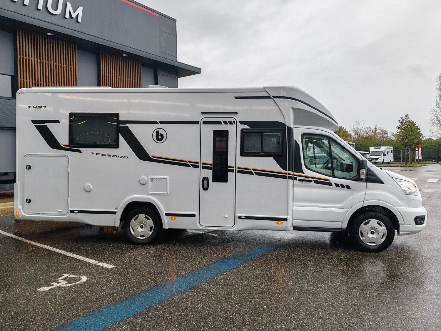 Le camping-car Benimar Tessoro 497, basé sur un châssis robuste de Ford et animé par un moteur 2,0 litres de 165 chevaux associé à une boîte automatique, allie puissance et confort de conduite, tandis que son intérieur moderne et lumineux, doté d’une implantation avec lit central et salon face-face, offre un espace convivial et pratique pour voyager à deux ou en famille, en profitant pleinement de chaque étape avec sérénité et bien-être.