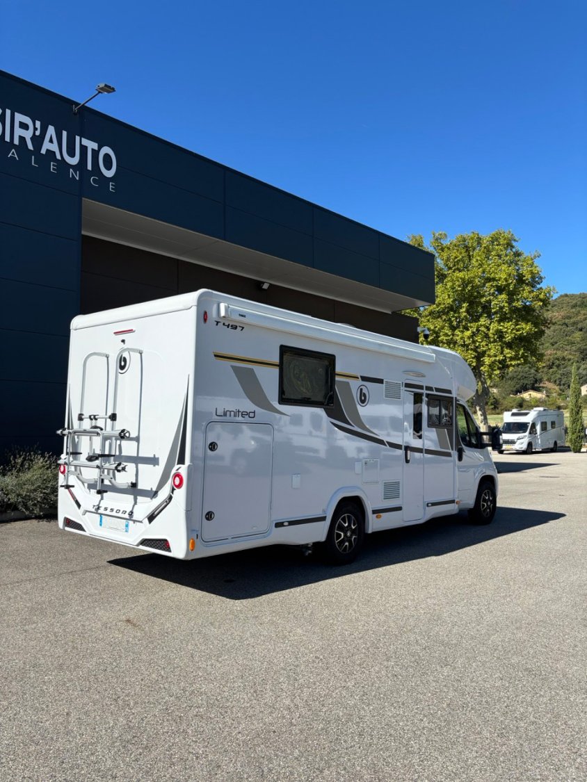 Le Benimar Tessoro 497 Limited est un camping-car profilé reposant sur la base du Peugeot Boxer 2.2L BlueHDi, ici dans sa version 140 ch avec boîte manuelle à 6 rapports. Long de 7,38 mètres, ce modèle séduit par son design extérieur moderne, sa ligne fluide et ses équipements pensés pour un usage confortable en toutes saisons.