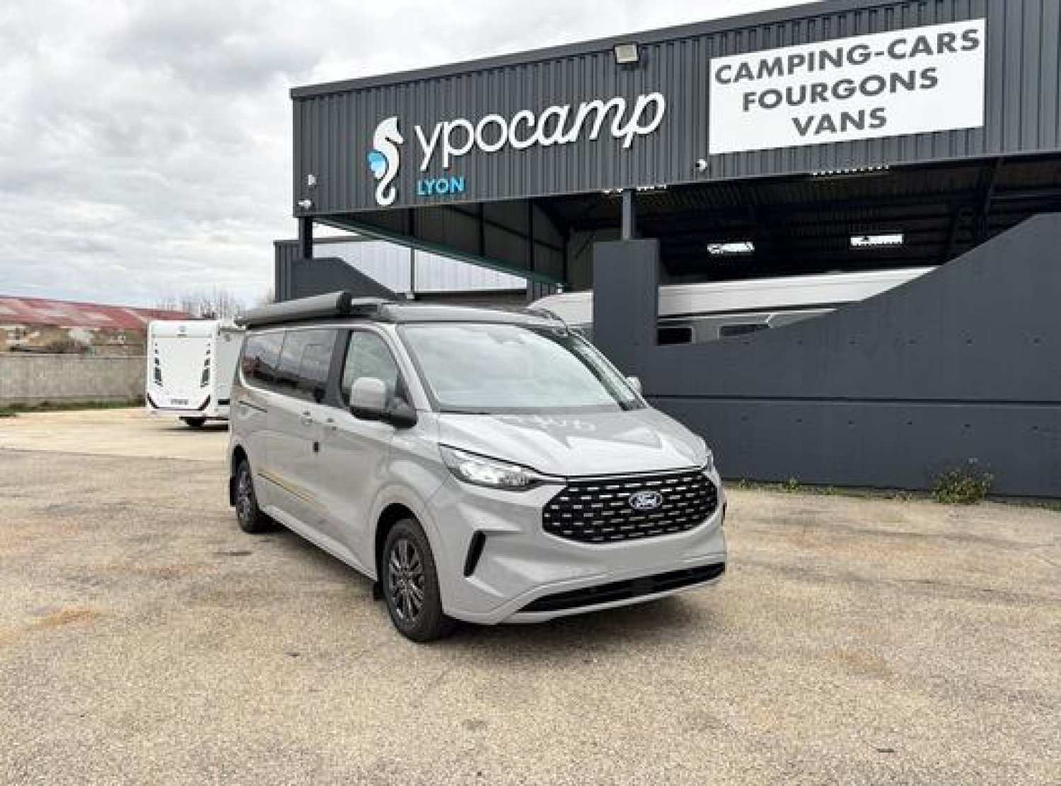 SERIE LIMITEE B66 Ford Tourneo Custom V 710 - 170 ch – Titanium / Boîte automatique / Peinture extérieure Gris Matter avec toit relevable anthracite / Réservoir carburant 70 litres / Climatisation bi-zone (zone conducteur et passager) / Pré-équipement attelage / Jantes alu 17’’ avec pneus 4 saisons / Store extérieur anthracite 3,0 m / OEillets d'arrimage pour le système de rails coulissants /Chauffage stationnaire Diesel 2 kW/Régulateur de vitesse adaptatif et système Stop & Go / Système de navigation intégré écran 13‘‘ / Caméra de recul / Avertisseur d’angle mort / Système de reconnaissance des panneaux de signalisation / Assistance au freinage d'urgence / Projecteurs LED / Volant chauffant / Stores occultants cabine et habitation : 0 €