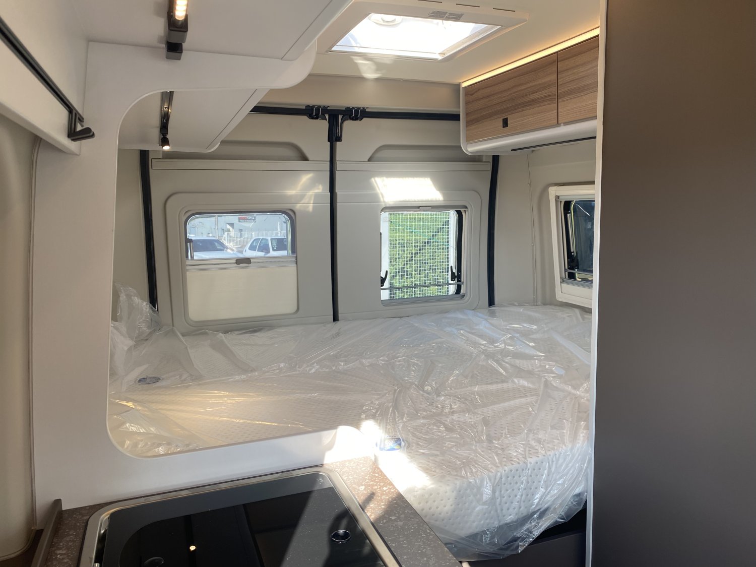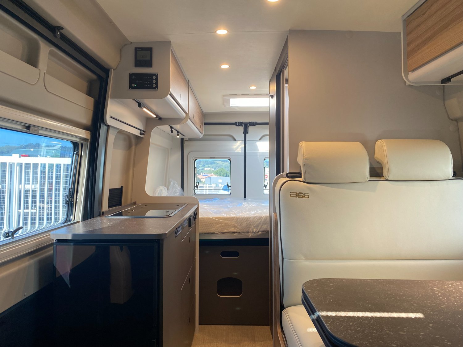 Burstner fait très fort avec cette série B 66. Ce fourgon de 5m99 dispose de 3 couchages avec grand lit arrière et un dinette transformable. Coup de cœur assuré tant il séduisant par sa couleur extérieure Gris Lanzarote, sa sérigraphie spécifique B66, sa sellerie cuir et son nouveau mobilier. Intérieurement, il est admirablement bien conçu avec une belle chambre arrière avec un lit en 150x197cm, une salle de bain vario, une cuisine astucieuse et un salon généreux. Un niveau d'équipement de série très appréciable.