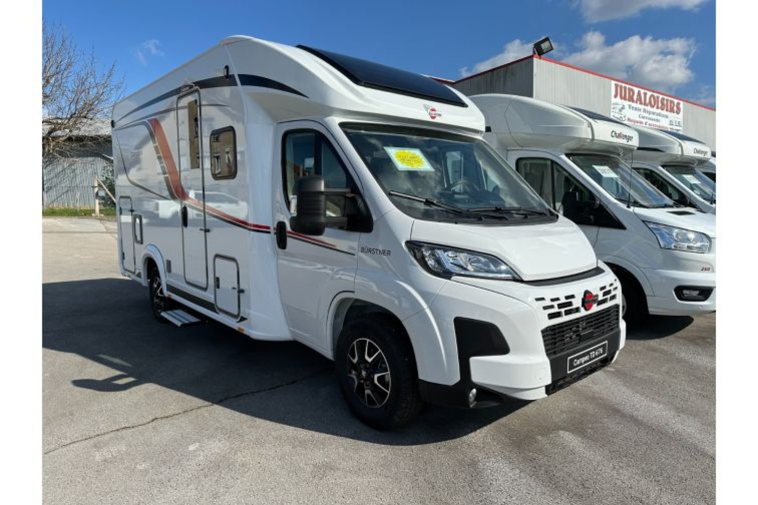 Pack Campéo TD (stores plissés occultants cabine, sunroof, porte cellule large avec baie, moustiquaire et verrouillage centralisé, baies à encadrement, lanterneau 700x500, marchepied électrique, éclairages indirects, my Burstner App, écran de contrôle 7 p, porte supplémentaire côté G)
