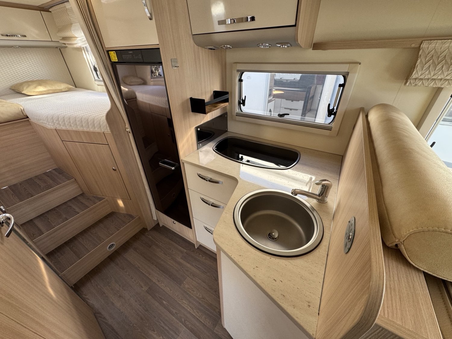 Le Bürstner T 726 G 2019 offre un aménagement moderne et confortable, idéal pour voyager en duo ou en famille.