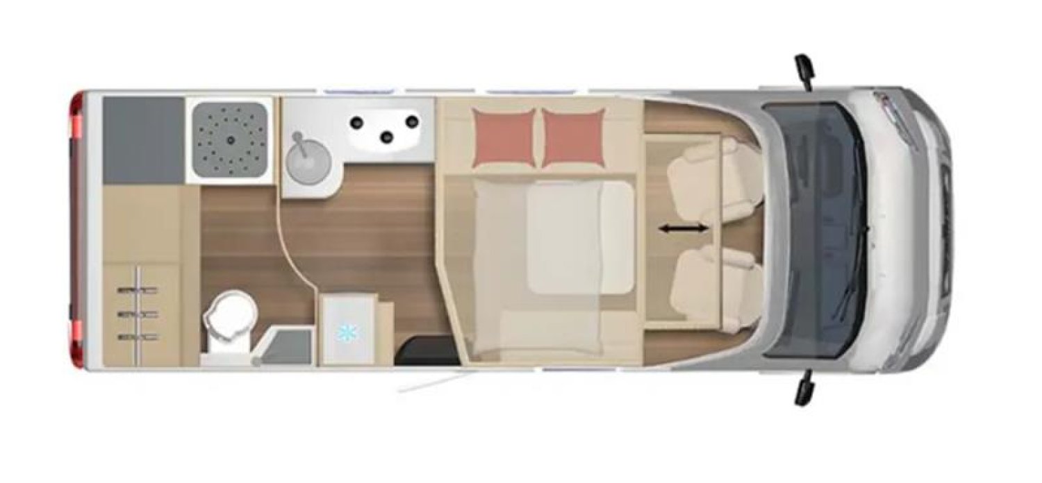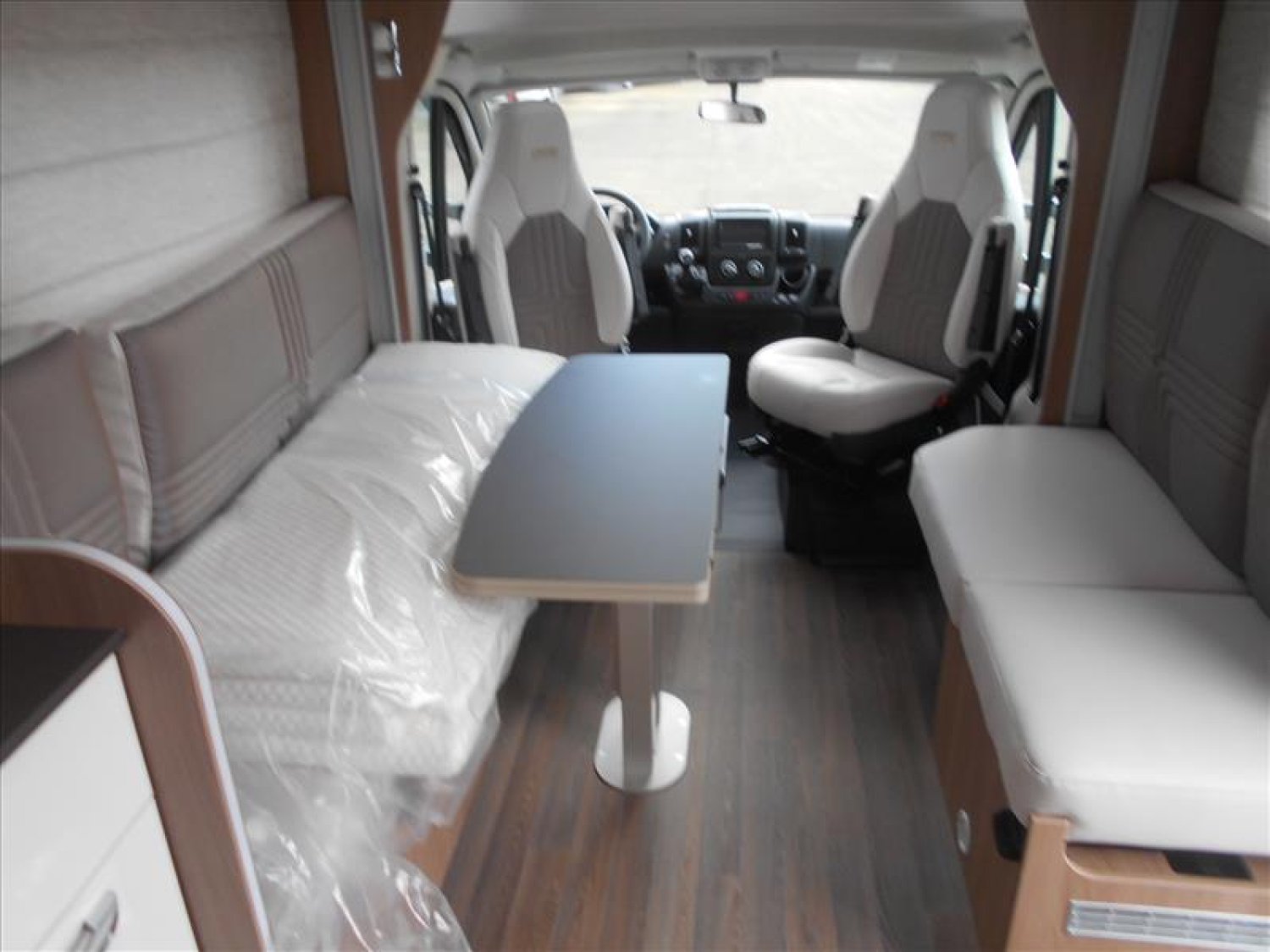 Rideaux occultants, Sun roof, Capteur de pression pneumatique, Climatisation manuelle en cabine, Éclairage extérieur à LED, Porte de soute coté droit, Prise de courant dans garage, Réfrigérateur 142L congélation 15L, Centrale de commande, Plaque de suisson 3 feux, Programmateur Digital CP Plus, Regulateur de vitesse Cruise Control, Réservoir diesel 90L, Porte entrée XL avec stored'occultation et moustiquaire, Commandes Radio au volant, Batterie cellule 95Ah, WC à cassette, Table portefeuille