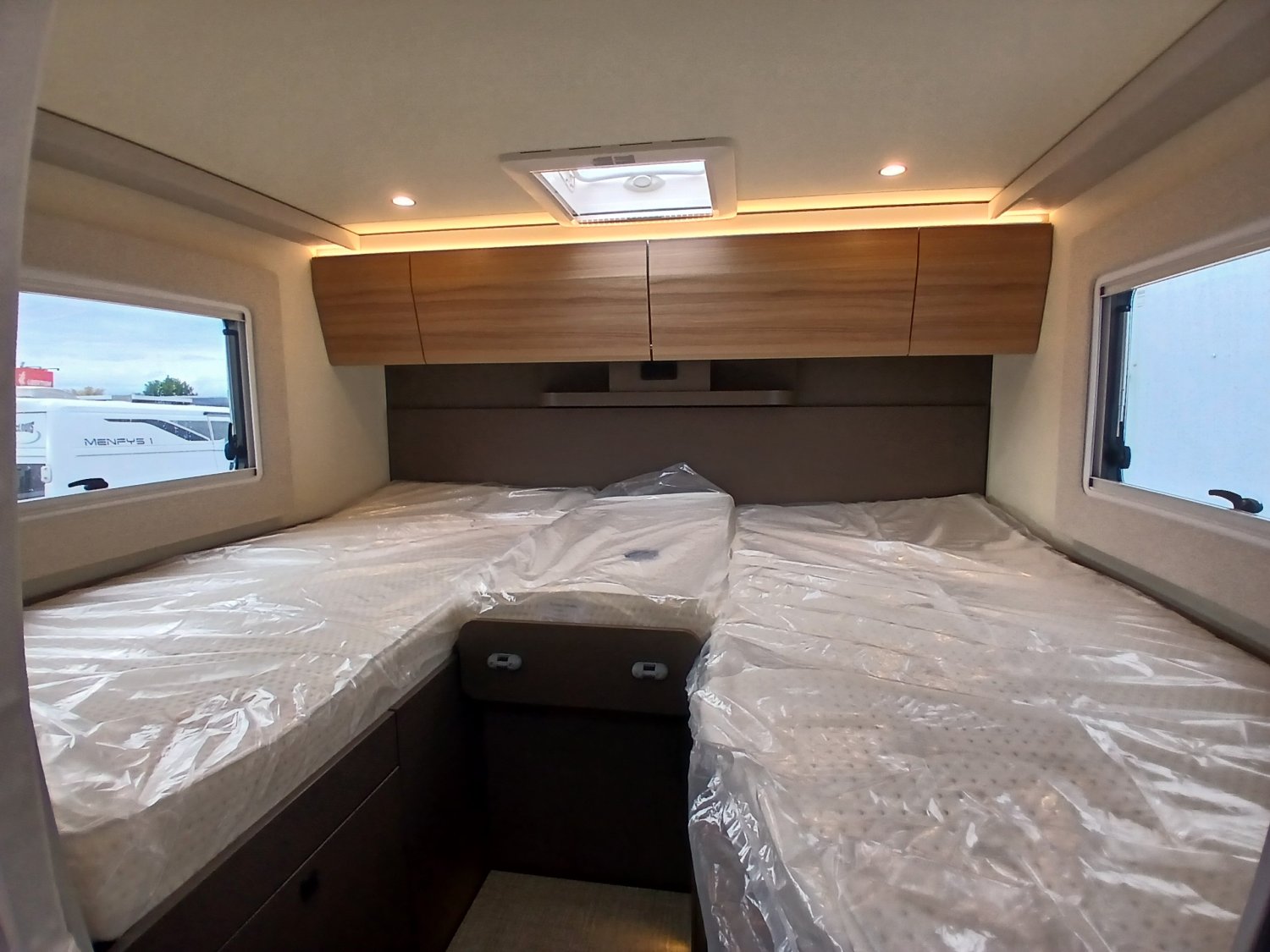 Boîte automatique 140 ch, Porte d'entrée XXL avec baie et moustiquaire, Double plancher technique Thermo-Floor isolé et chauffé, Station multimédia avec caméra de recul, Jantes aluminium 16" bicolores, Réfrigérateur à compression 131.5l, Rangement intégrés, Batteriel lithium, Dînette en L avec table et plateau orientable