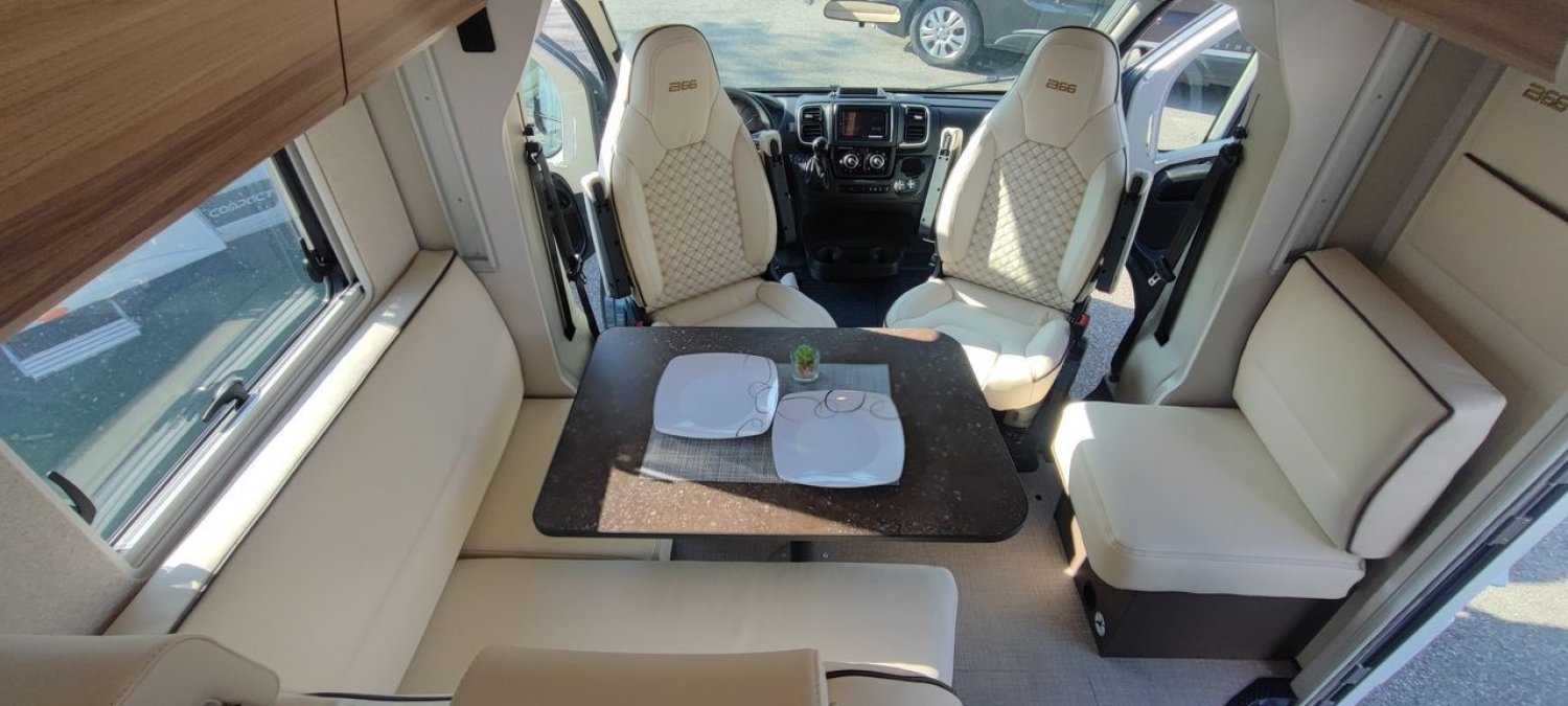 "À bord de votre profilé Burstner B66 LYSEO TD 690 le confort est au rendez-vous grâce a son haut niveau d'équipements, Le double plancher technique isolé, chauffé et continu est un allié de choix "