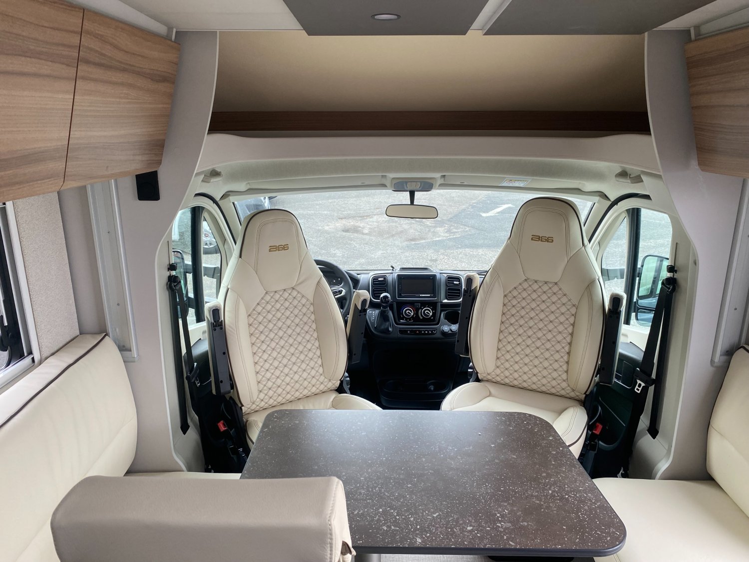 Boîte automatique 140 ch, Jantes aluminium 16’’ bicolores, Réfrigérateur à compression 131,5 l, Double plancher technique Thermo-Floor isolé et chauffé avec, Station multimédia avec caméra de recul, Batterie lithium, Porte d’entrée XL avec baie et moustiquaire
