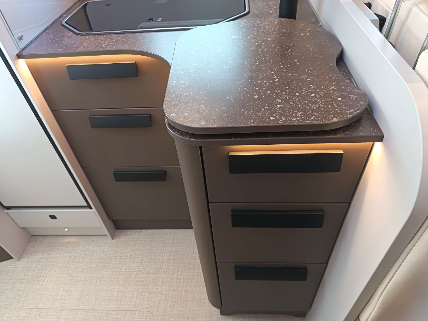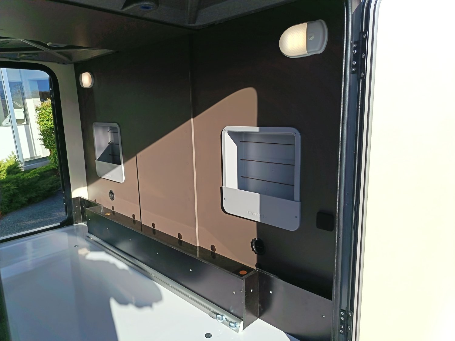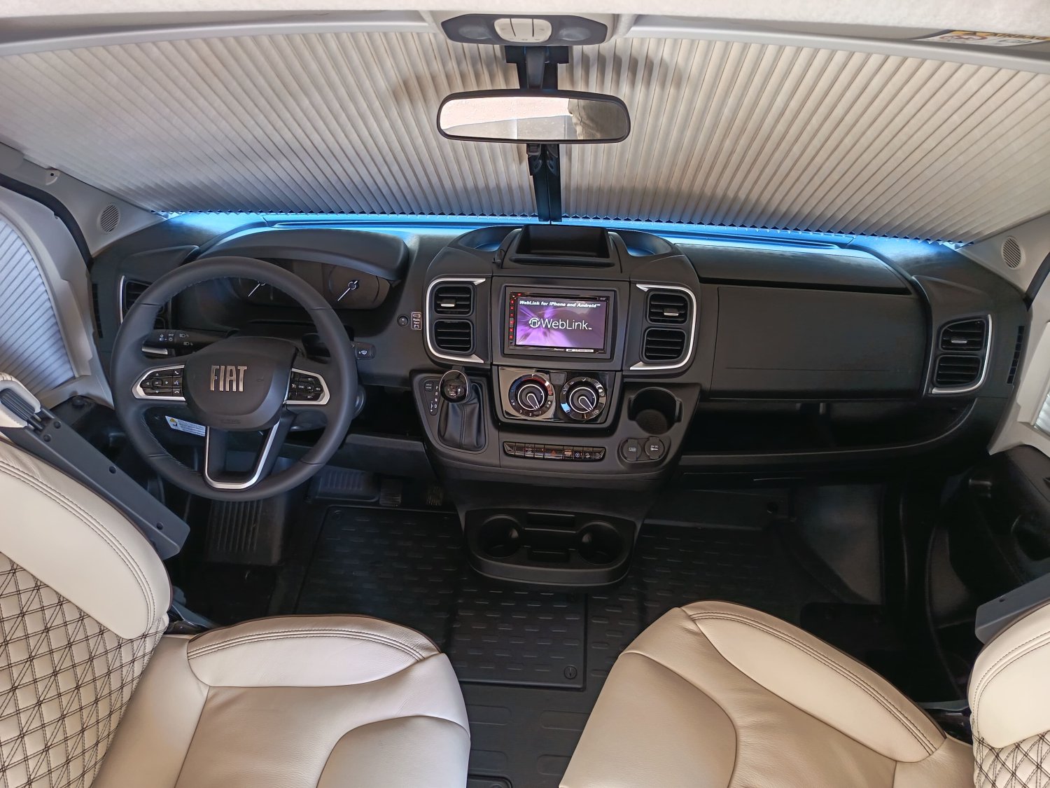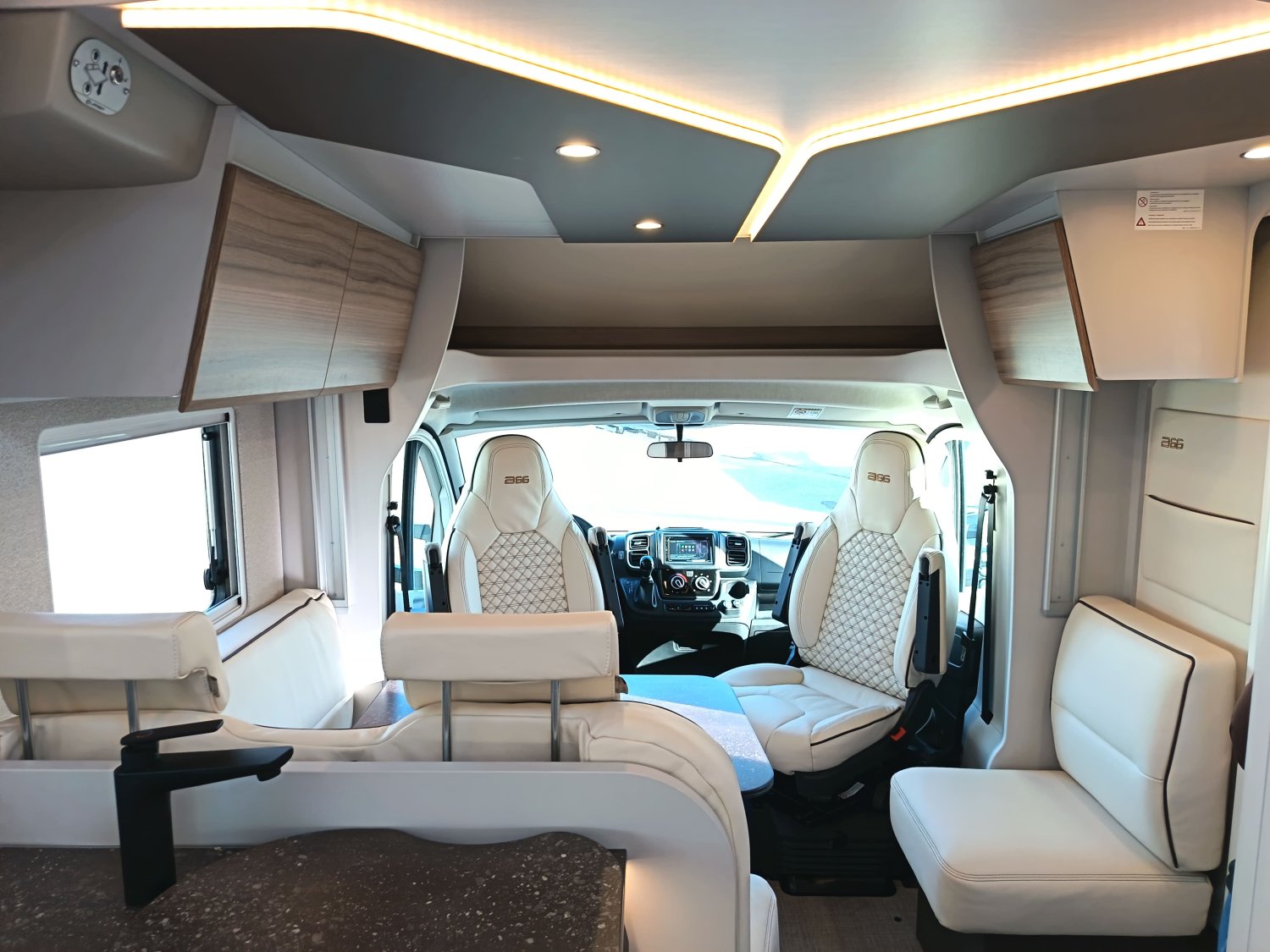 PORTE GARAGE COTE GAUCHE, STATION MULTIMEDIA CAMERA RECUL, STORES PLISSES OCCULTANTS DE CABINE, VOLANT MULTIFONCTIONS, PORTE CELLULE 2 POINTS AVEC BAIE ET CENTRALISATION, JANTES ALU 16", BAIES A ENCADREMENT, FREIN A MAIN ELECTRIQUE, COUSSIN POUR LIT JUMEAUX, SELLERIE EXCLUSIVE EN CUIR AVEC MATELASSAGE B66, BATTERIE LITHIUM 105AH, BOITE AUTOMATIQUE, FEUX ANTI BROUILLARD, DOUBLE PLANCHER ISOLE/CHAUFFE, PACK ECLAIRAGE INDIRECT