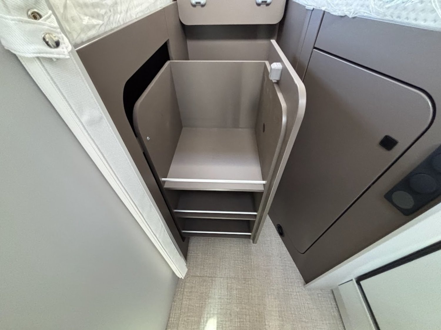 marchepied électrique, stores plissés cabine, moustiquaire de porte, baie