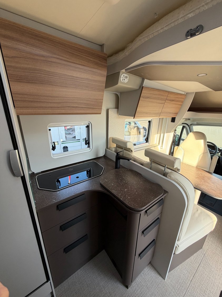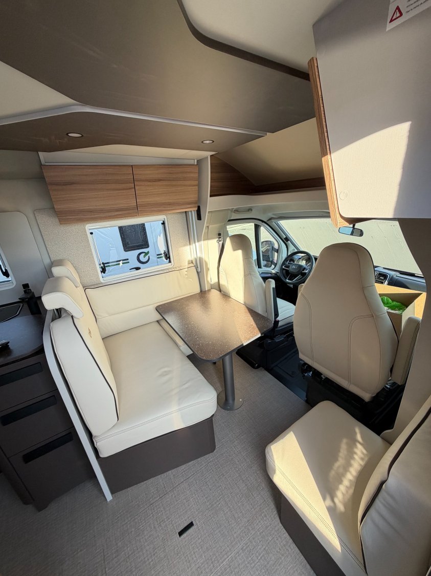 Rétroviseurs électriques et dégivrants, Feux de jour, Fix and Go Kit (à la place de la roue de secours), DCDC 25AMP, Sièges cabine pivotants, CHAUFFAGE/CHAUFFE EAU COMBI 6 GAZ, Frein à main électrique, Porte-gobelets, Volant et pommeau de levier de vitesse gainés cuir, ********, ************, Marchepied cellule encastré, Marchepied électrique, Marchepieds cabine, Peinture extérieure Gris Lanzarote (cabine), Plancher isolé en XPS avec soubassement en polyester, Porte d'entrée version large avec fenêtre, moustiquaire,, Collecteur de déchets et verrouillage centralisé, Jantes aluminium 16'' Bi-Color, Pare-chocs avant couleur carrosserie, Pneus 4 saisons, Ressorts à lames composites, Régulateur de vitesse avec limiteur de vitesse, Réservoir diesel 60 litres, Stores plissés occultants cabine, Tableau de bord Techno (application aluminium), BATTERIE LITHIUM 100Ah, Traction + avec fonction Hill Descent Control, Climatisation manuelle en cabine, Habillage des sièges cabine assorti à la cellule, REFRIGERATEUR 131L DONT COMPARTIMENT CONGELATION 15L, COFFRE A GAZ 2X11 KG, ABS (système antiblocage des roues), Alternateur renforcé (220 Ah), Capteur de pression, Châssis Fiat à voie arrière élargie, Feux antibrouillard avant, Rétroviseurs bras large, Start & Stop, Airbag conducteur et passager, Station multimédia avec caméra de recul