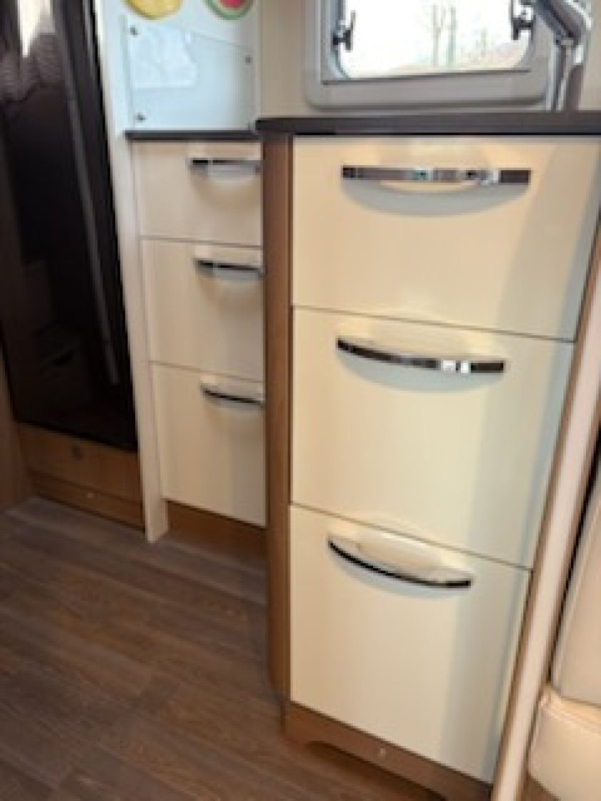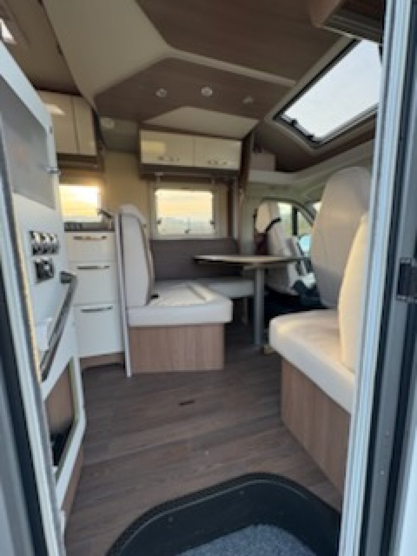 Très bien agencé, gaz 3 feux mais en ligne , alarme ultra son 1500€, pneus Michelin Cross Climate ( 4saisons ) 1000€ , routeur , soute aménagée , étagères sur la partie droite installées ce qui laisse la soute entièrement libre pour 2 VTTAE , douche Vario , mais très grande , on se sèche dedans !révision complète faite chez Citroen ! étanchéité a jour !