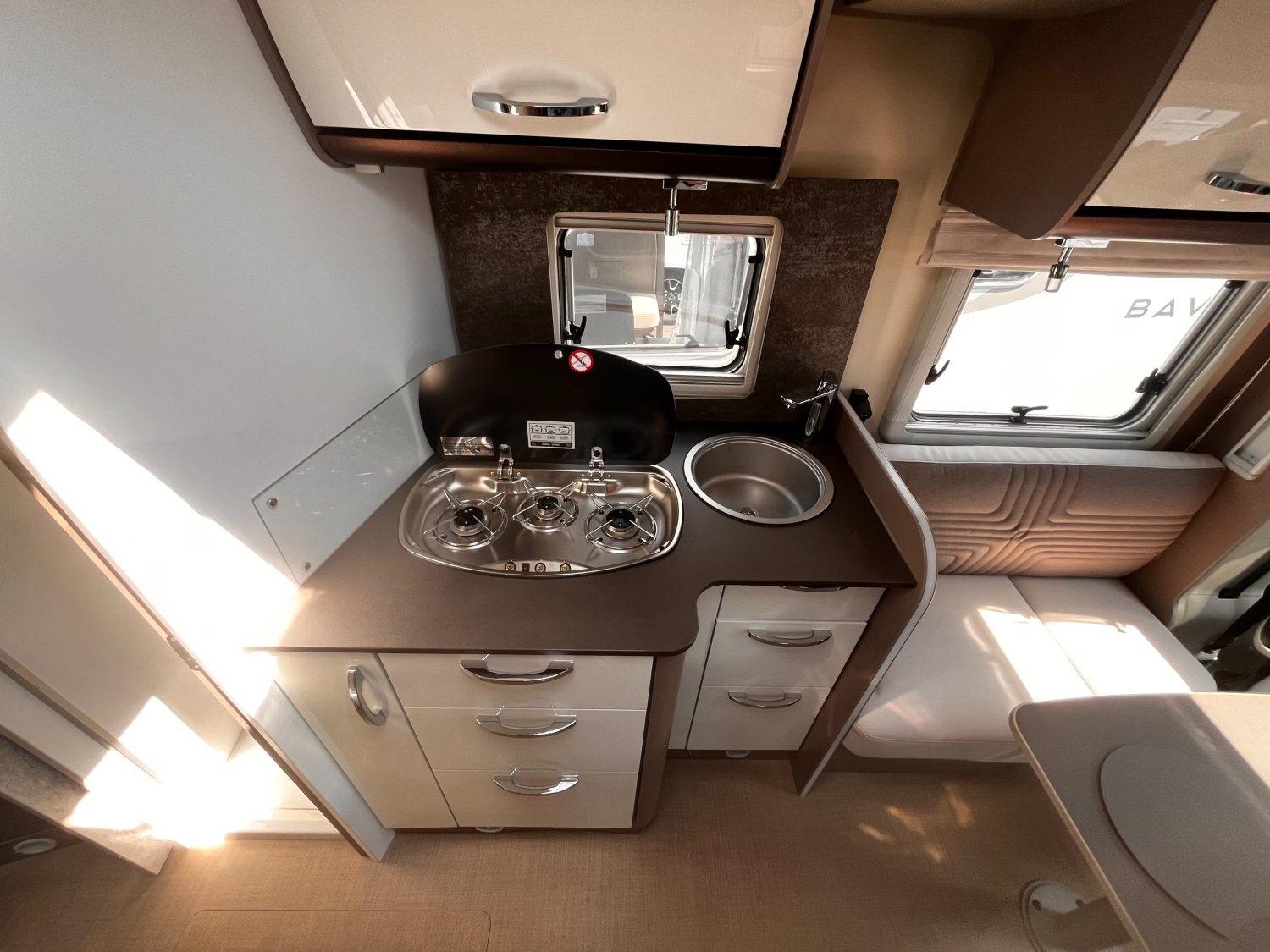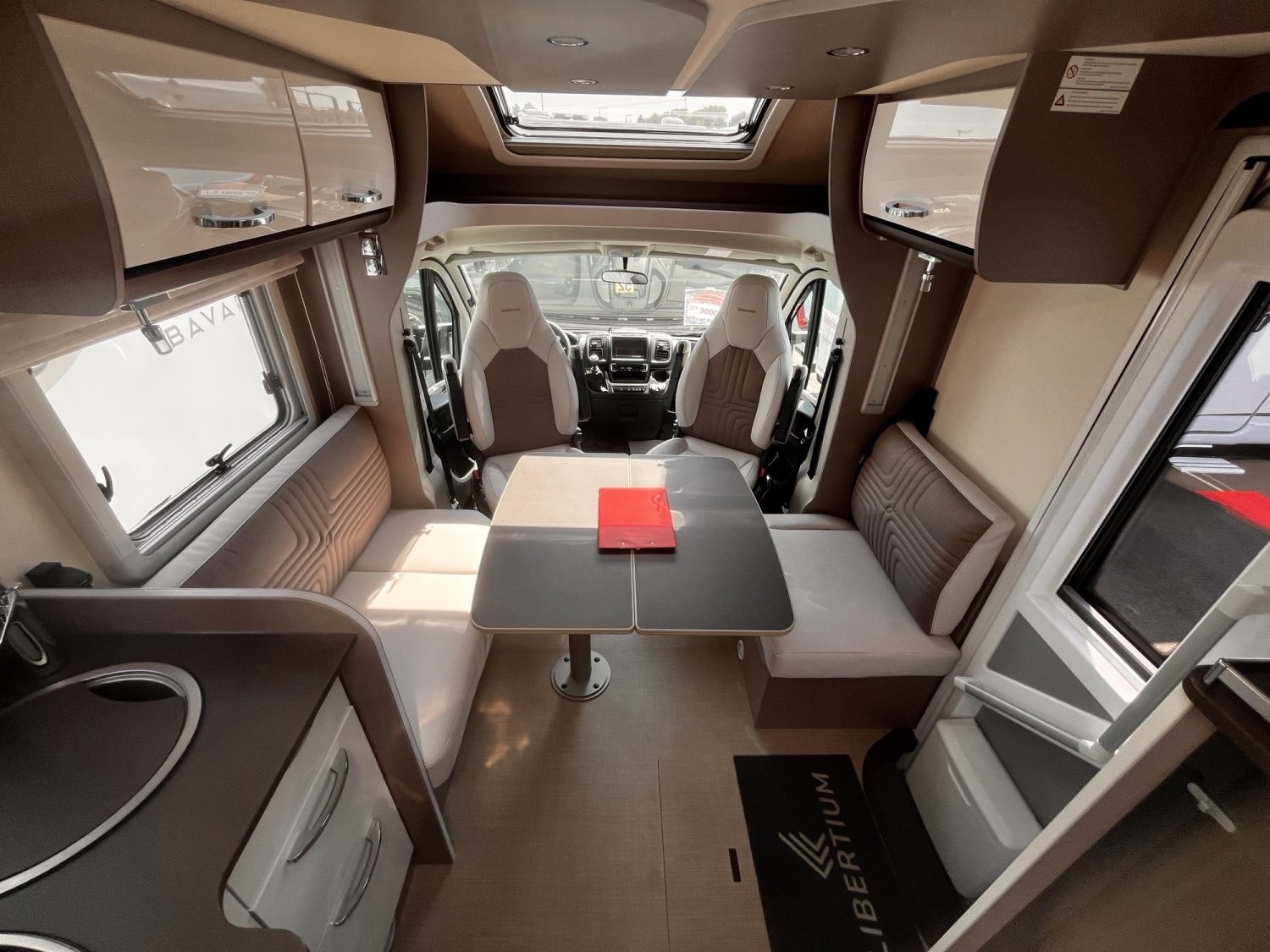 Sièges cabine pivotants, Stores plissés occultants cabine, VOLET ROULANT REMIS, Rétroviseurs électriques et dégivrants, Assistance freinage post-collision, Climatisation manuelle en cabine, Coussin additionnel grand couchage arrière, Lève-vitres électriques et verrouillage centralisé, Plaque de cuisson 3 feux, Régulateur de vitesse, Réservoir diesel 75 litres, SKYROOF, PORTE GARAGE SUPL. GAUCHE, Double plancher technique isolé et chauffé - Thermofloor, ABS (système antiblocage des roues), Grandes trappes de rangement intégrées dans le double planch, ASR (Système anti-patinage), Dimension lit jumeau 205*155+205*135, ESP (Contrôle électronique de trajectoire)