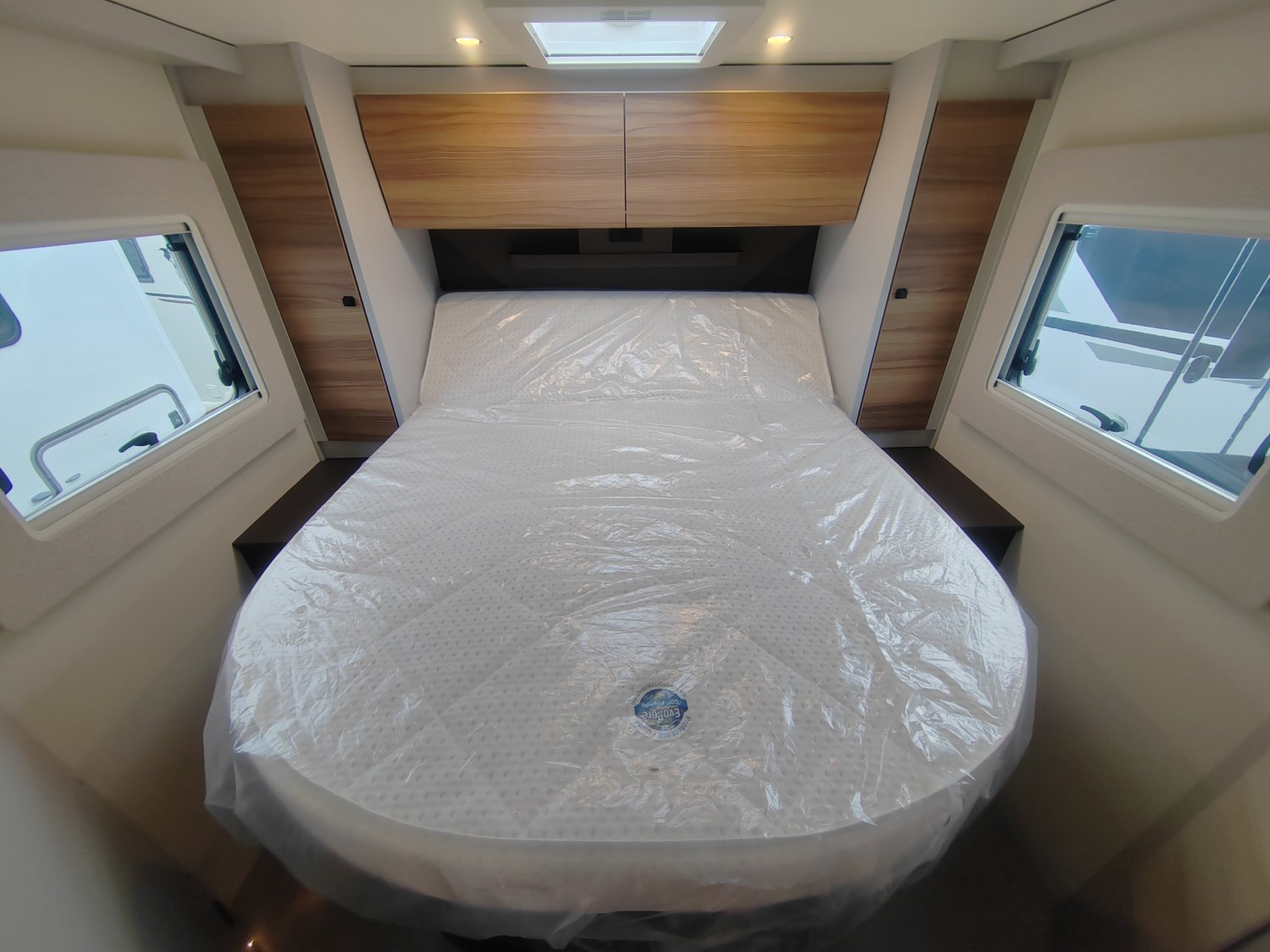BOITE AUTOMATIQUE, JANTES ALU 16" BICOLORES, STATION MULTIMEDIA AVEC CAMERA DE RECUL, BATTERIE LITHIUM, PORTE D'ENTREE XL AVEC BAIE ET MOUSTIQUAIRE, PEINTURE CAROSSERIE CABINE GRISE, LIT CENTRAL REGLABLE EN HAUTEUR, DOUBLE PLANCHER THERMO-FLOOR ISOLE ET CHAUFFE, SELLERIE CUIR VERITABLE CREME, MARCHE PIEDS ELECTRIQUE, REFRIGERATEUR A COMPRESSION 131.5L