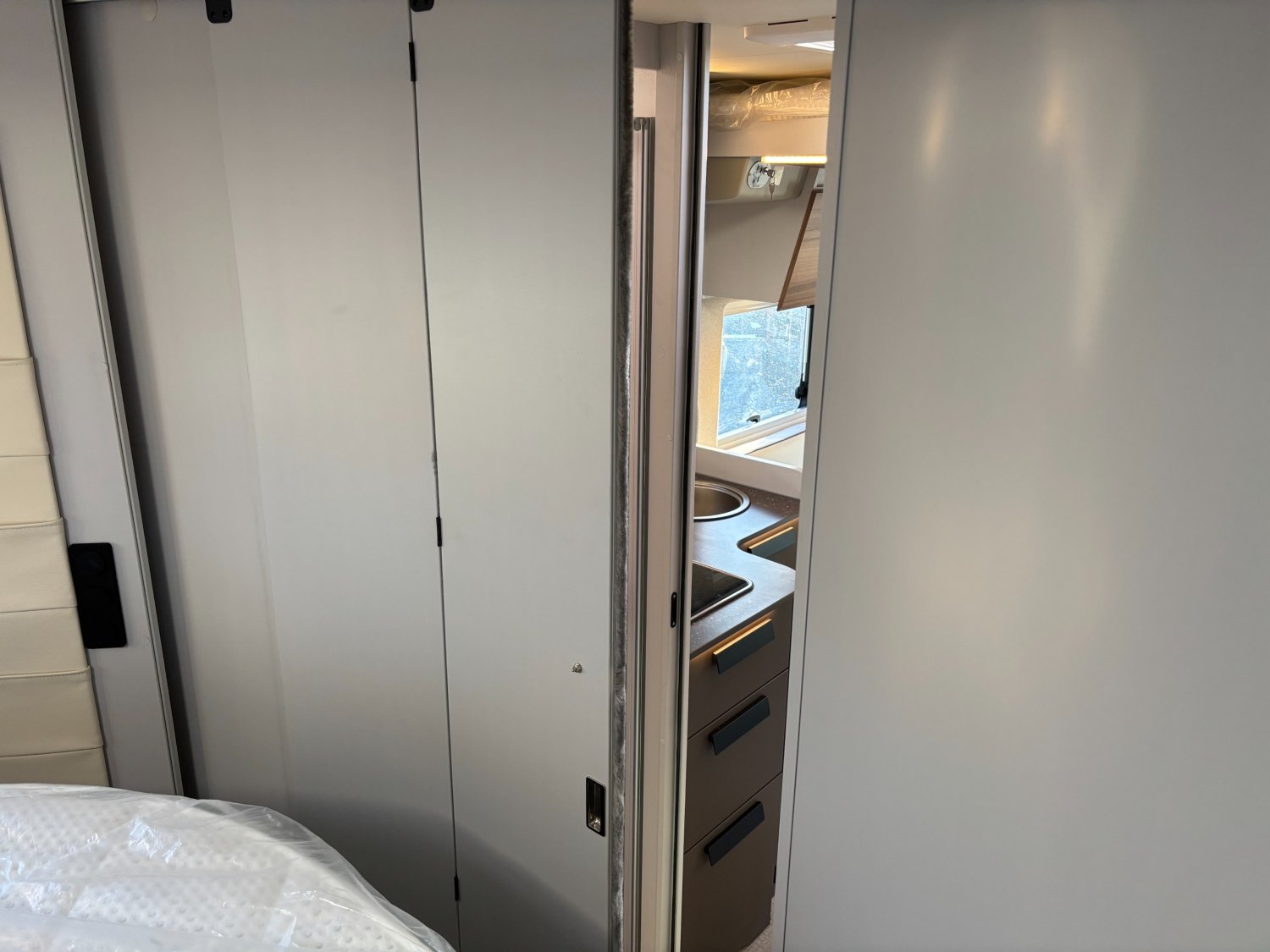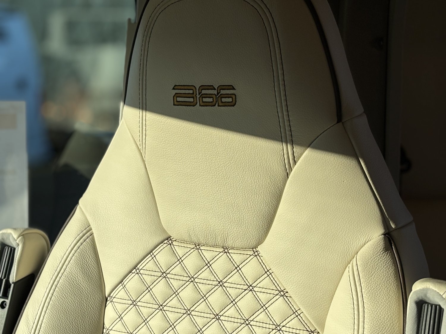 SELLERIE CUIR VERITABLE CREME, LIT CENTRAL REGLABLE EN HAUTEUR, DOUBLE PLANCHER THERMO-FLOOR ISOLE ET CHAUFFE, PORTE D'ENTREE XL AVEC BAIE ET MOUSTIQUAIRE, REFRIGERATEUR A COMPRESSION 131.5L, MARCHE PIEDS ELECTRIQUE, PEINTURE CAROSSERIE CABINE GRISE, BATTERIE LITHIUM, BOITE AUTOMATIQUE, JANTES ALU 16" BICOLORES, STATION MULTIMEDIA AVEC CAMERA DE RECUL