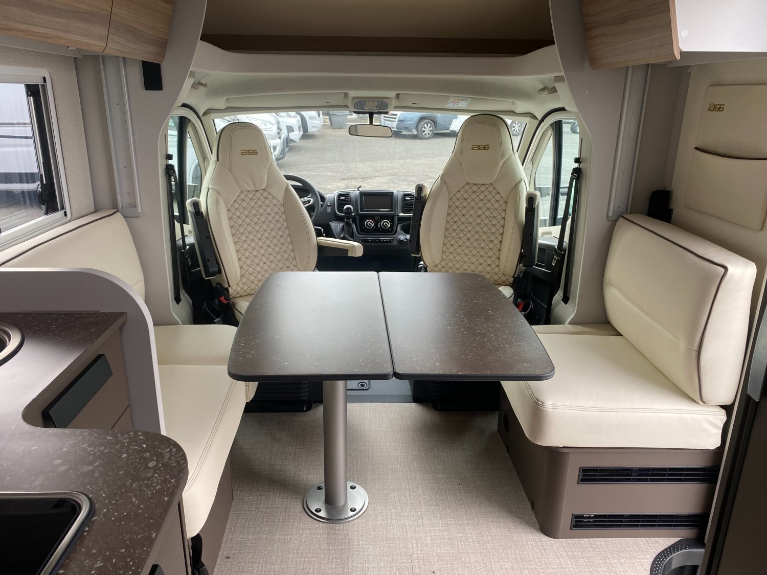Station multimédia avec caméra de recul, Réfrigérateur à compression 131,5 l, Jantes aluminium 16’’ bicolores, Lit central réglable en hauteur, Porte d’entrée XL avec baie et moustiquaire, Batterie lithium, Boîte automatique 140 ch, Double plancher technique Thermo-Floor isolé et chauffé