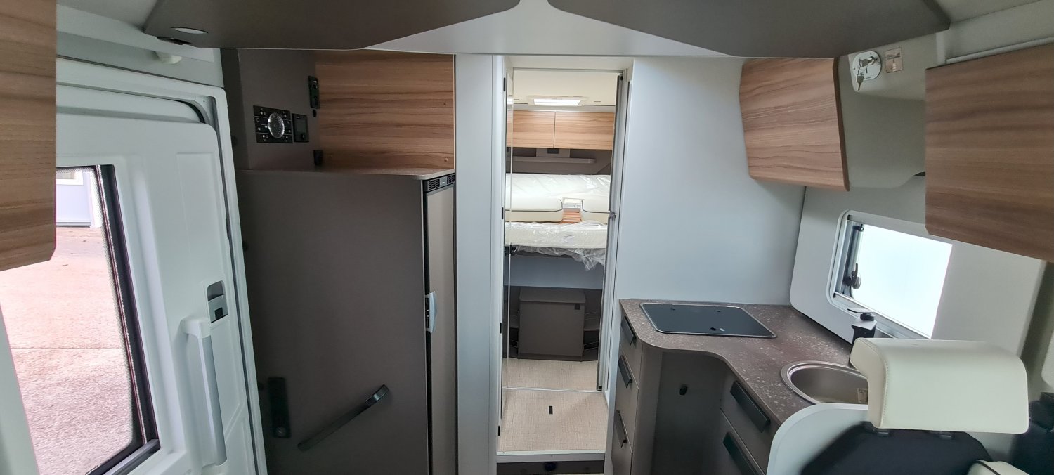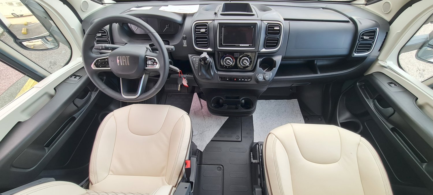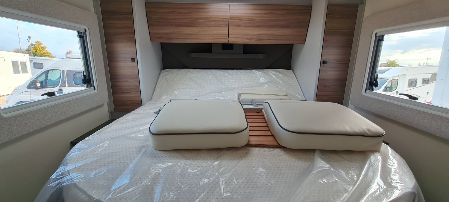 Boîte automatique 140 ch, Station multimédia avec caméra de recul, Batterie lithium, Banquette salon face-face avec table porte portefeuille, Porte d’entrée XL avec baie et moustiquaire, Double plancher technique Thermo-Floor isolé et chauffé, Réfrigérateur à compression 131,5 l, Lit central réglable en hauteur